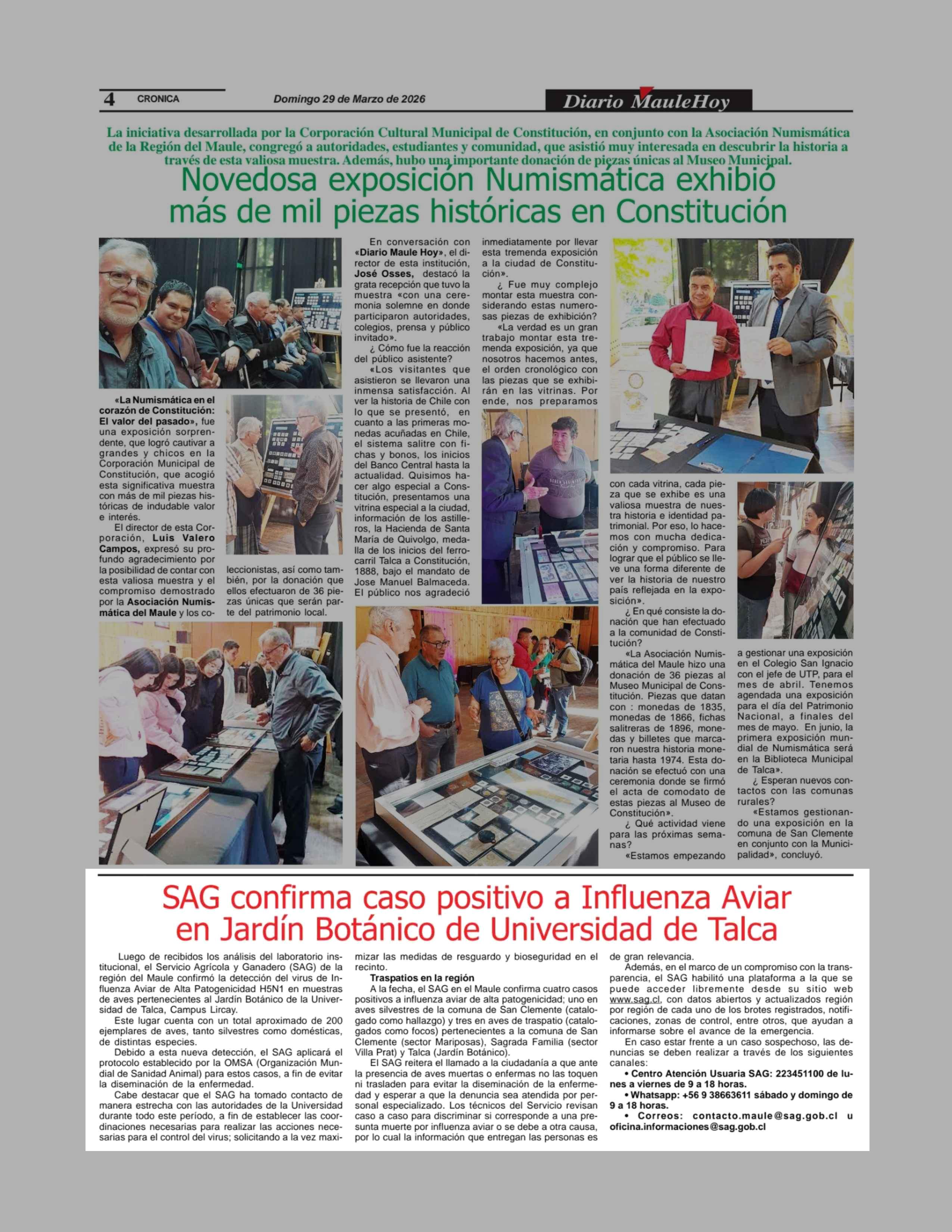 SAG confirma caso positivo a Influenza Aviar en Jardín Botánico de Universidad de Talca 29-03-2026 Maule Hoy |
