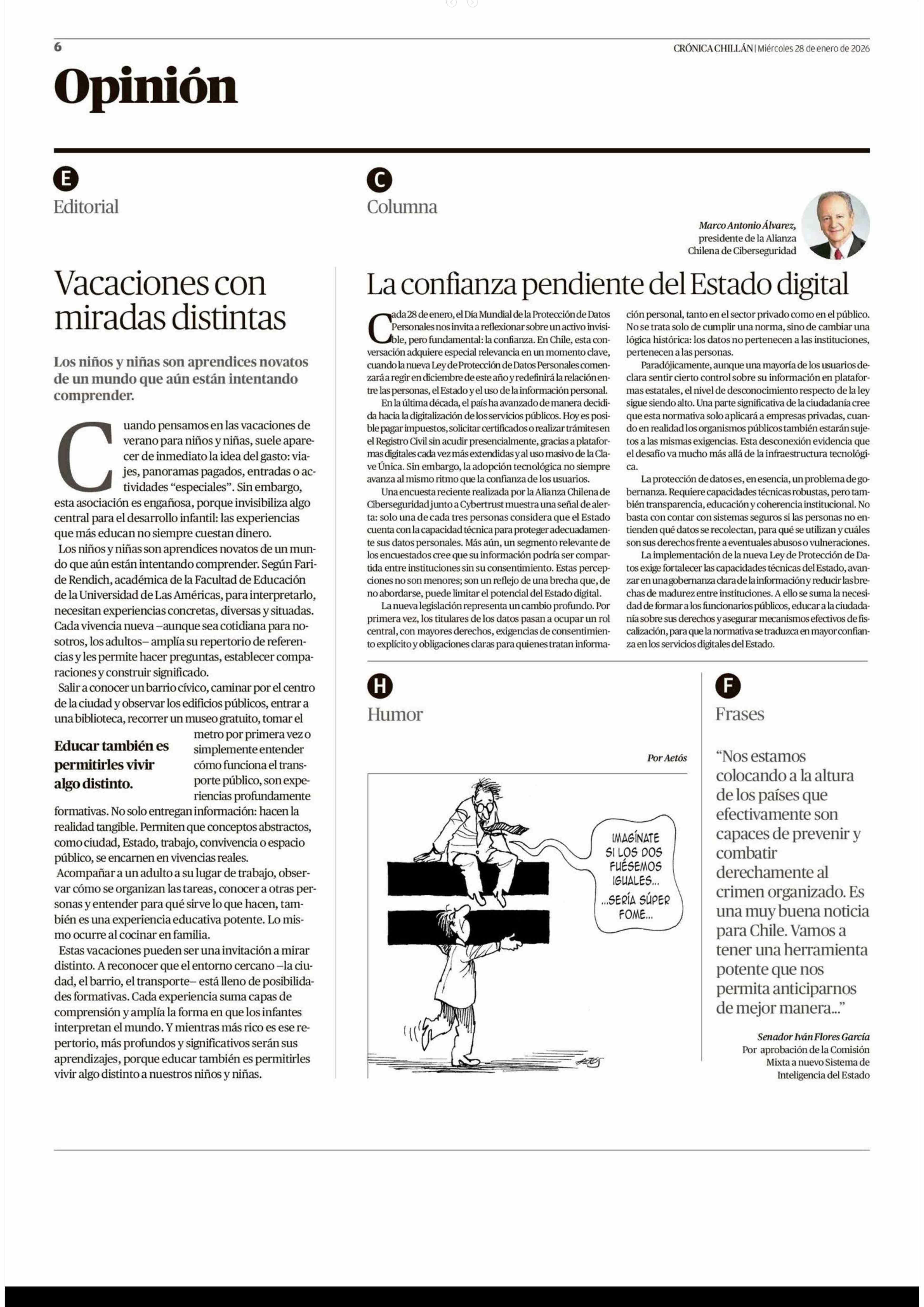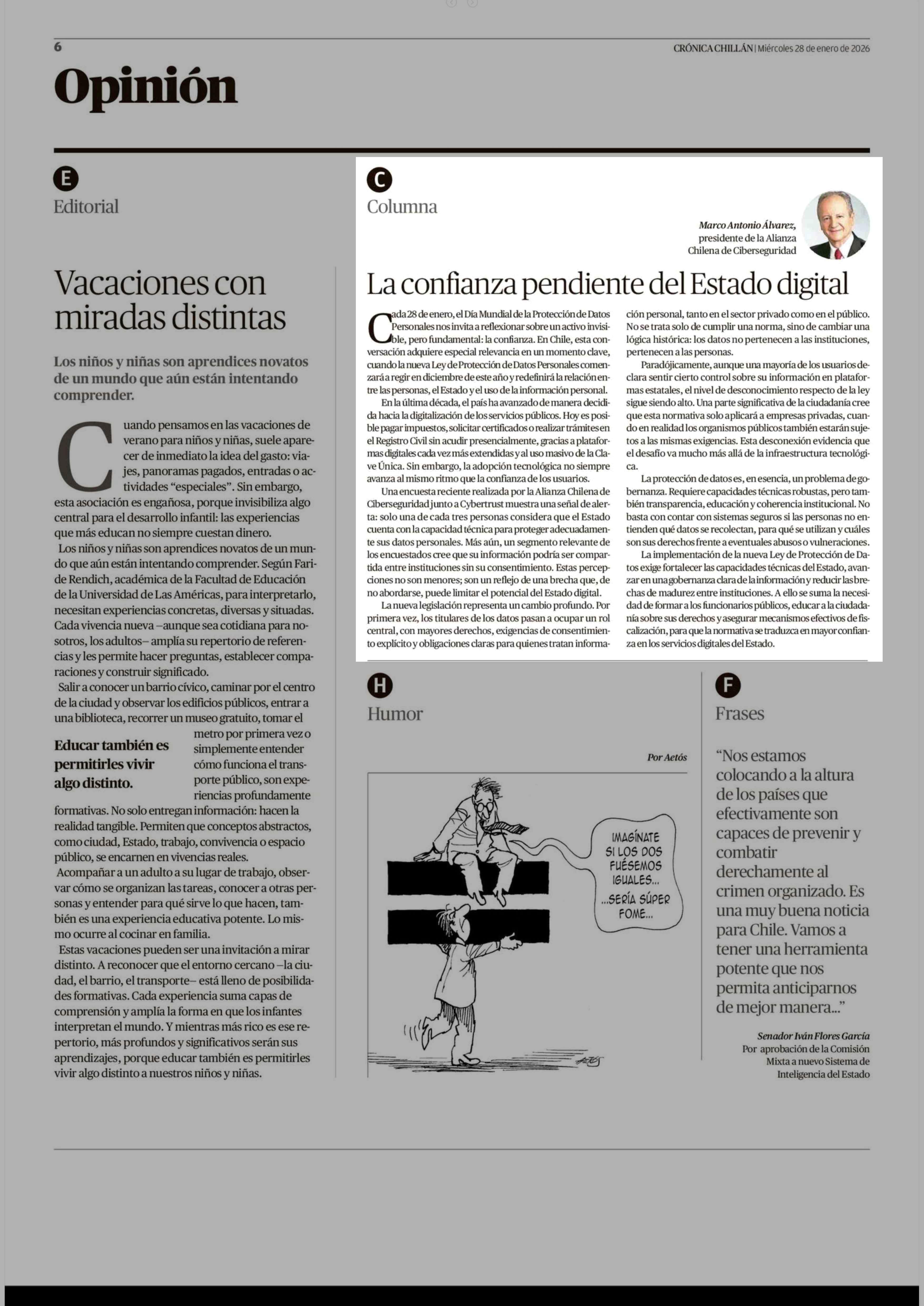 Columnas de Opinión: La confianza pendiente del Estado digital 28-01-2026 Crónica de Chillán |