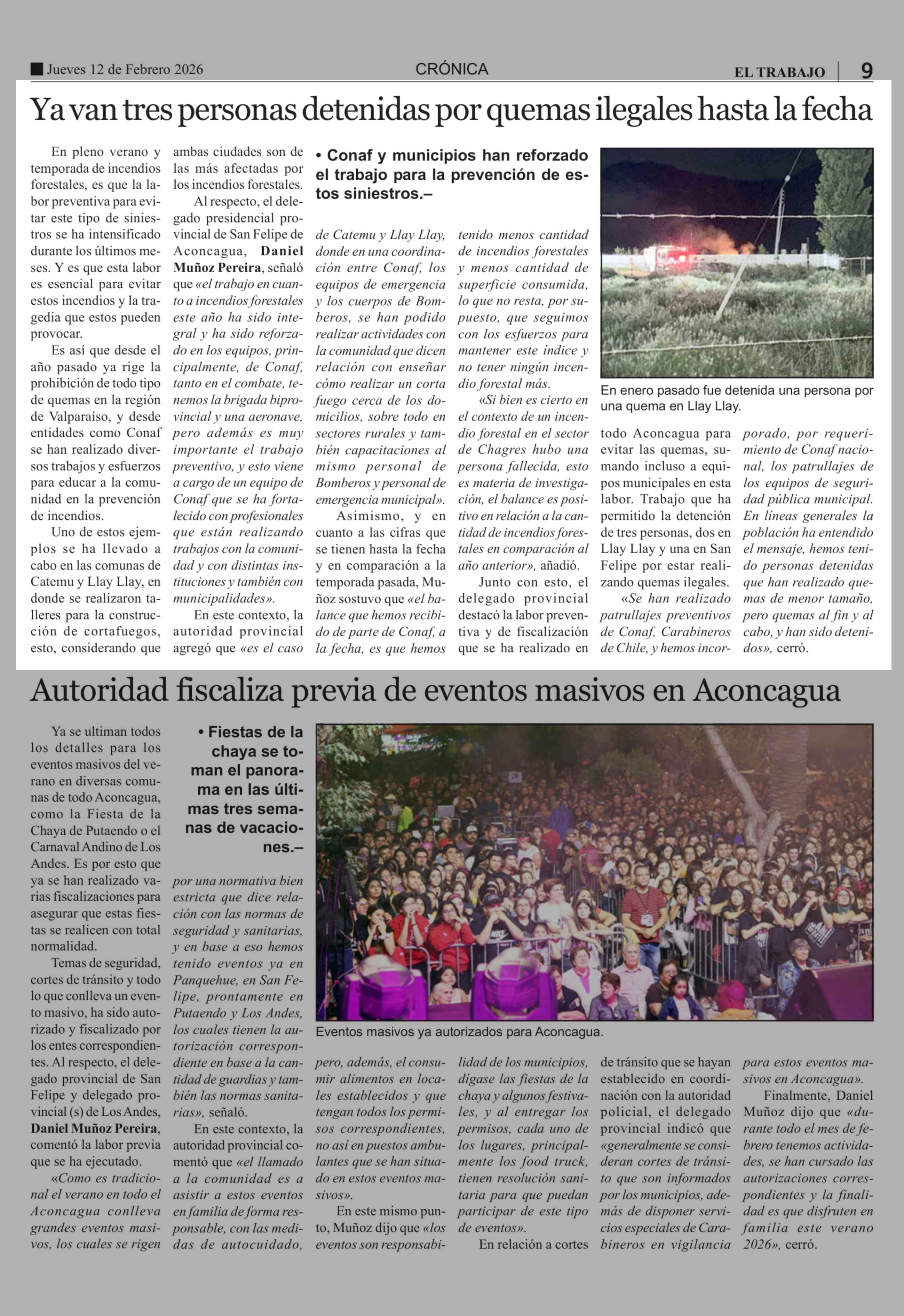 Ya van tres personas detenidas por quemas ilegales hasta la fecha 12-02-2026 El Trabajo |