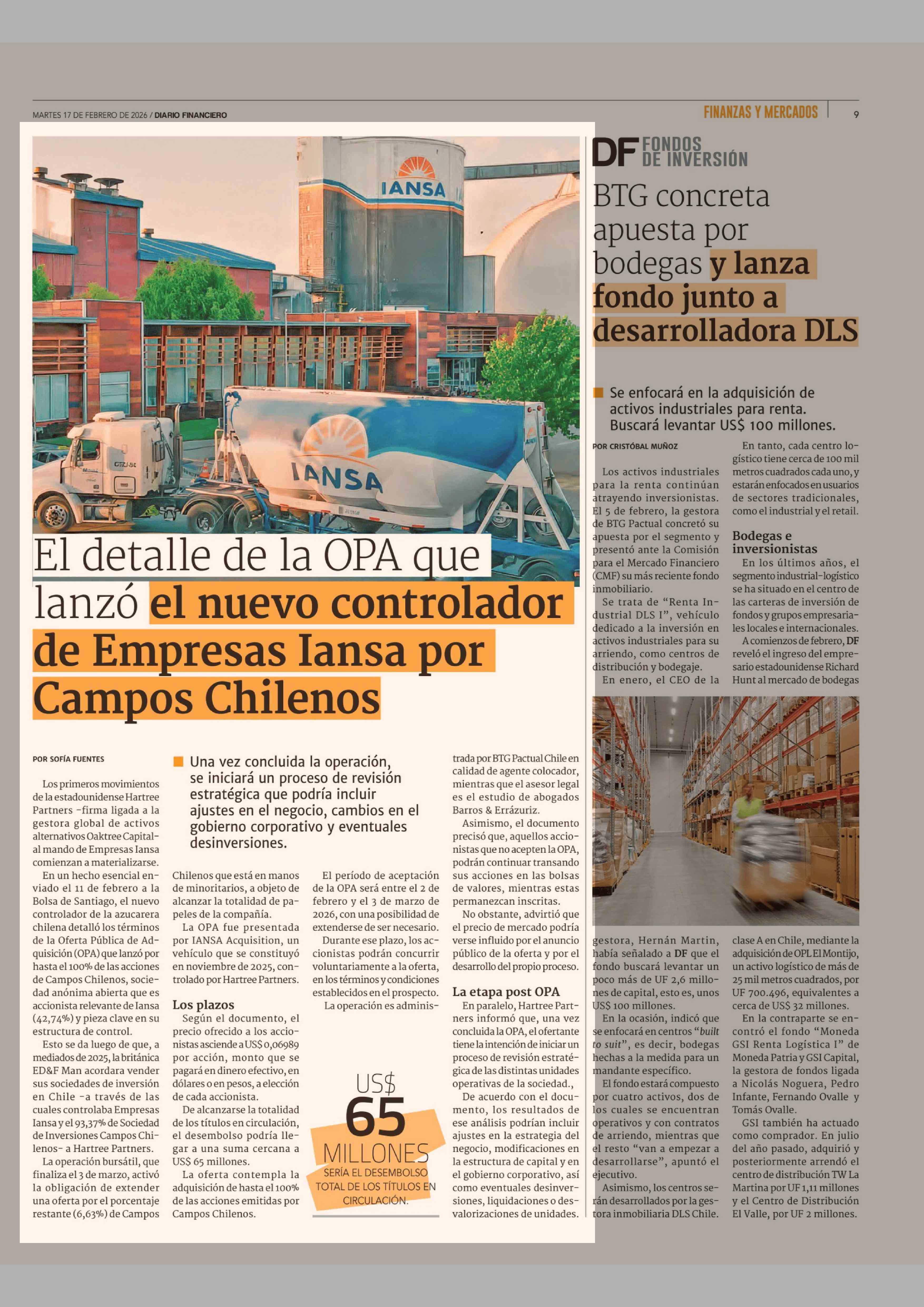 Título: El detalle de la OPA que lanzó el nuevo controlador de Empresas Iansa por Campos Chilenos