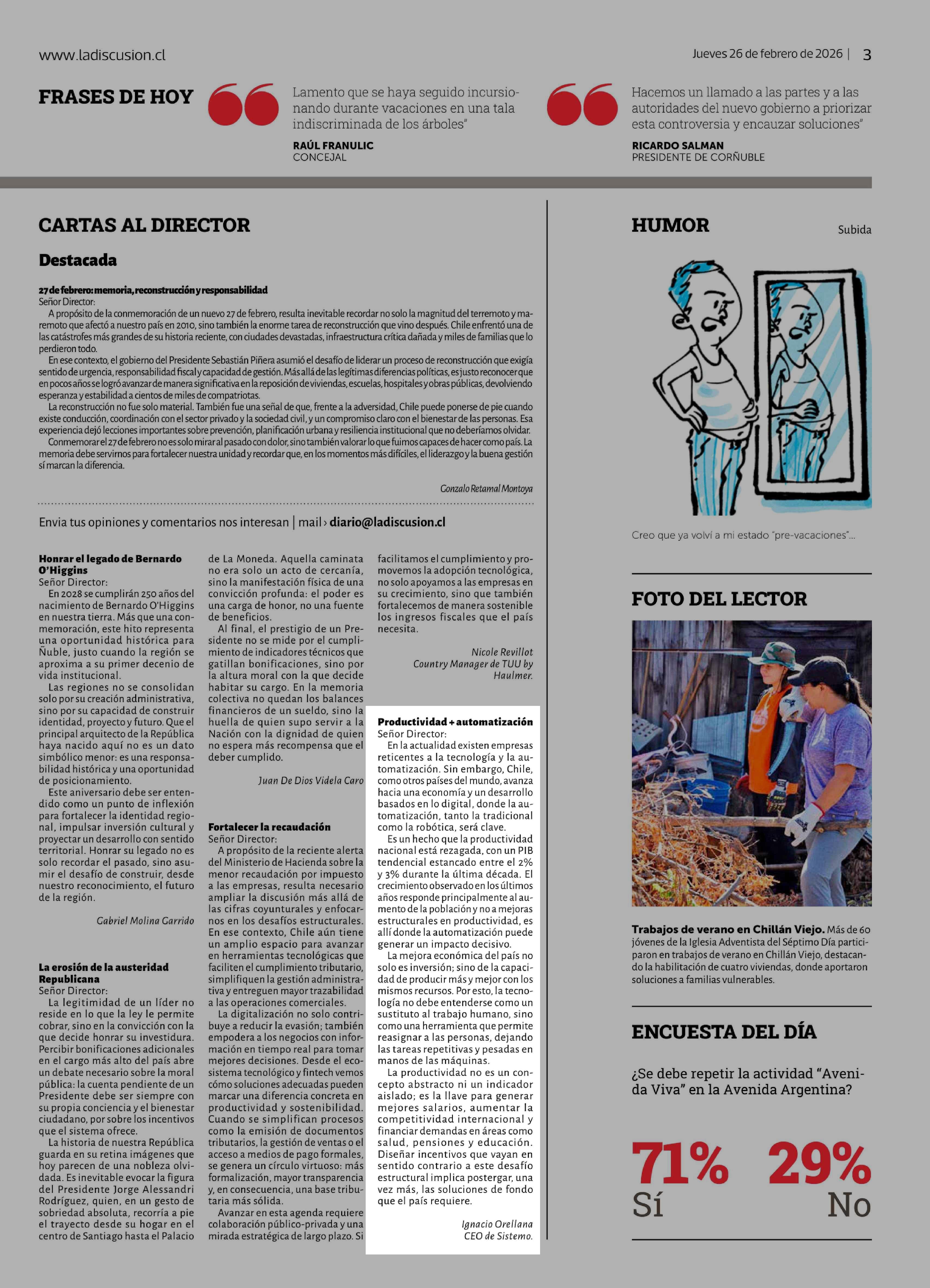 Fecha: 26-02-2026 Sector: Cartas Región: Región del Ñuble