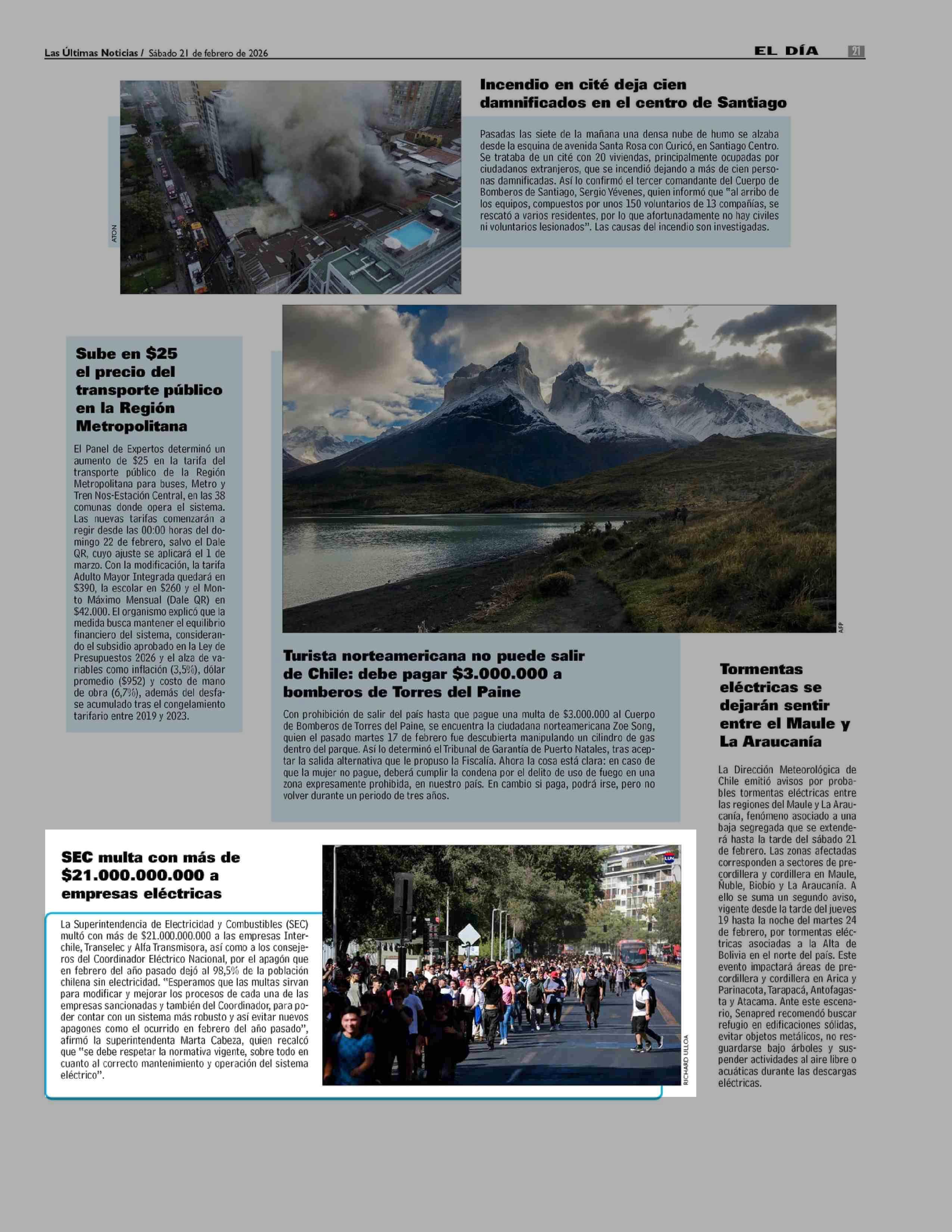 SEC multa con más de $21.000.000.000 a empresas eléctricas 21-02-2026 Las Últimas Noticias |