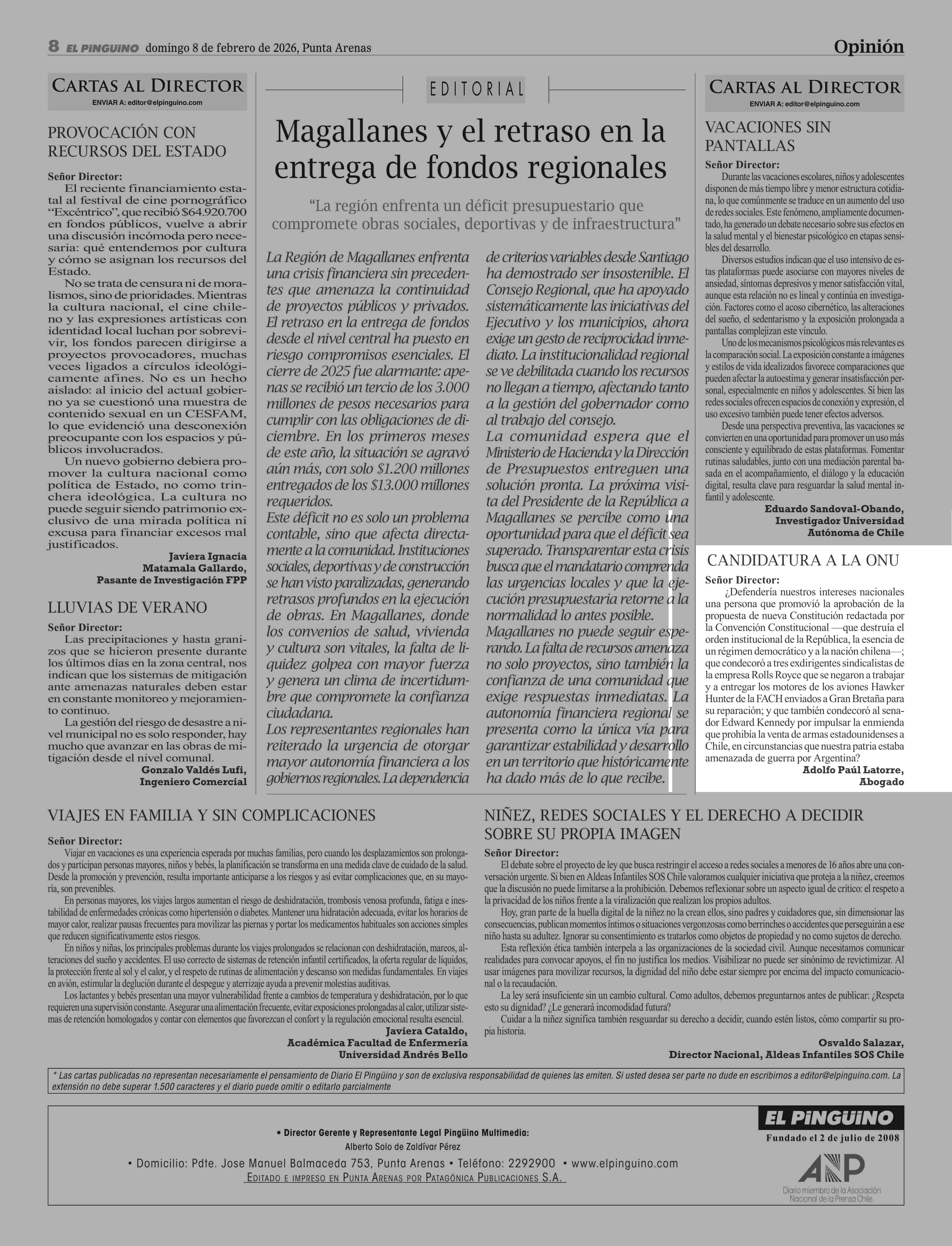 Fecha: 08-02-2026 Sector: Cartas Región: Región de Magallanes y de la Antártica Chilena