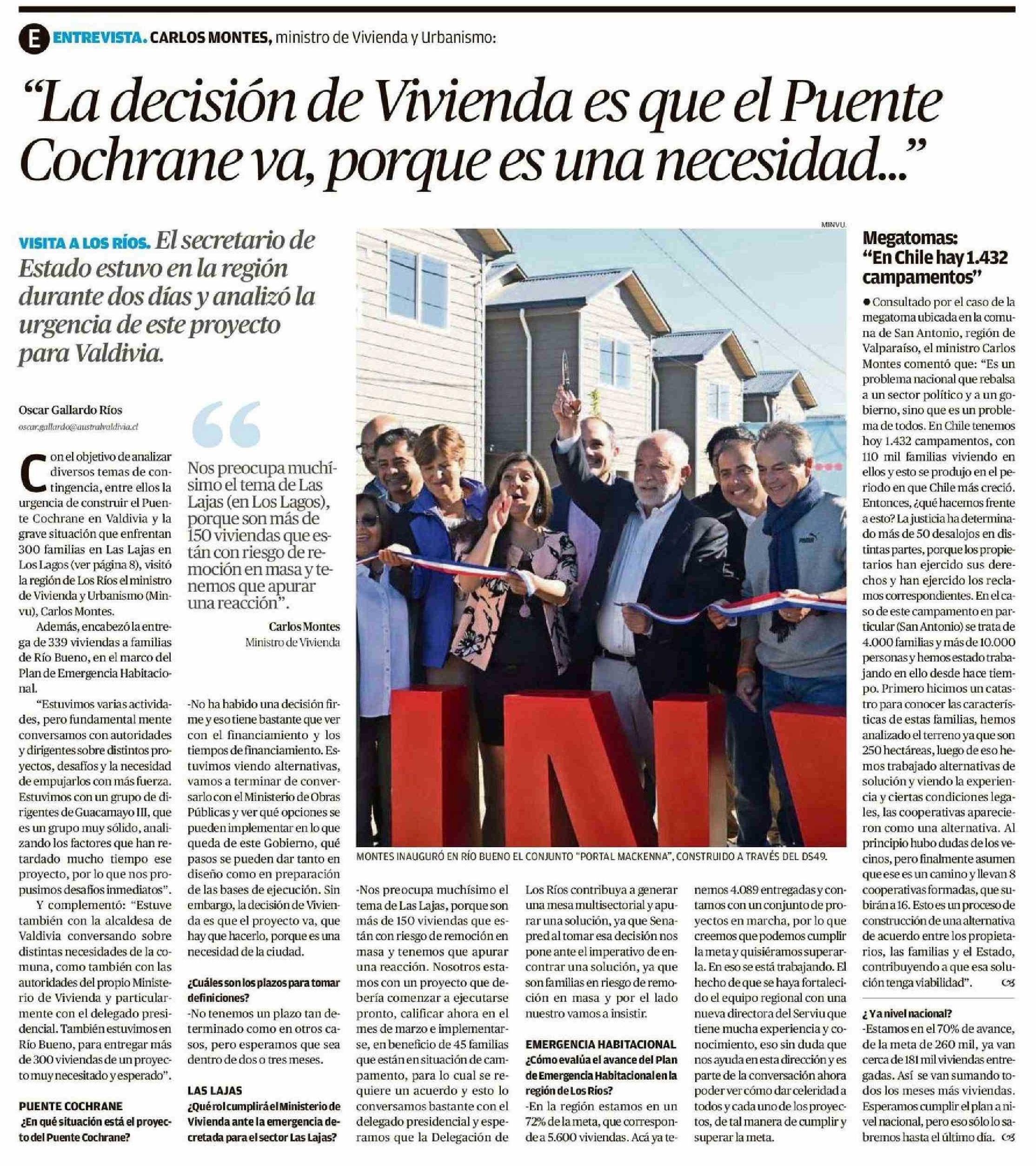 “La decisión de Vivienda es que el Puente Cochrane va, porque es una necesidad. 03-03-2025 Diario Austral Región de Los Ríos |