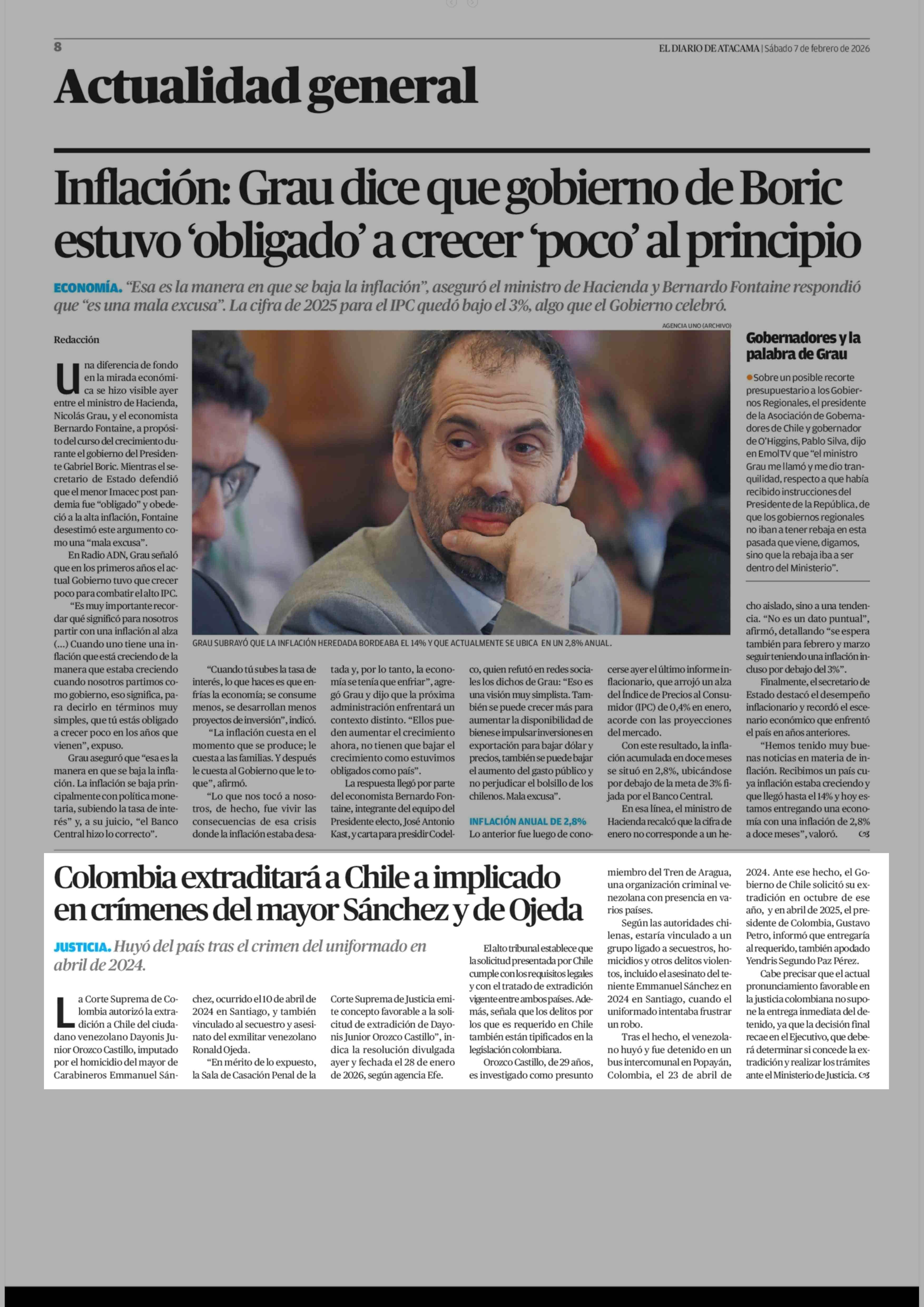 Colombia extraditará a Chile a implicado en crímenes del mayor Sánchez y de Ojeda 07-02-2026 El Diario de Atacama |
