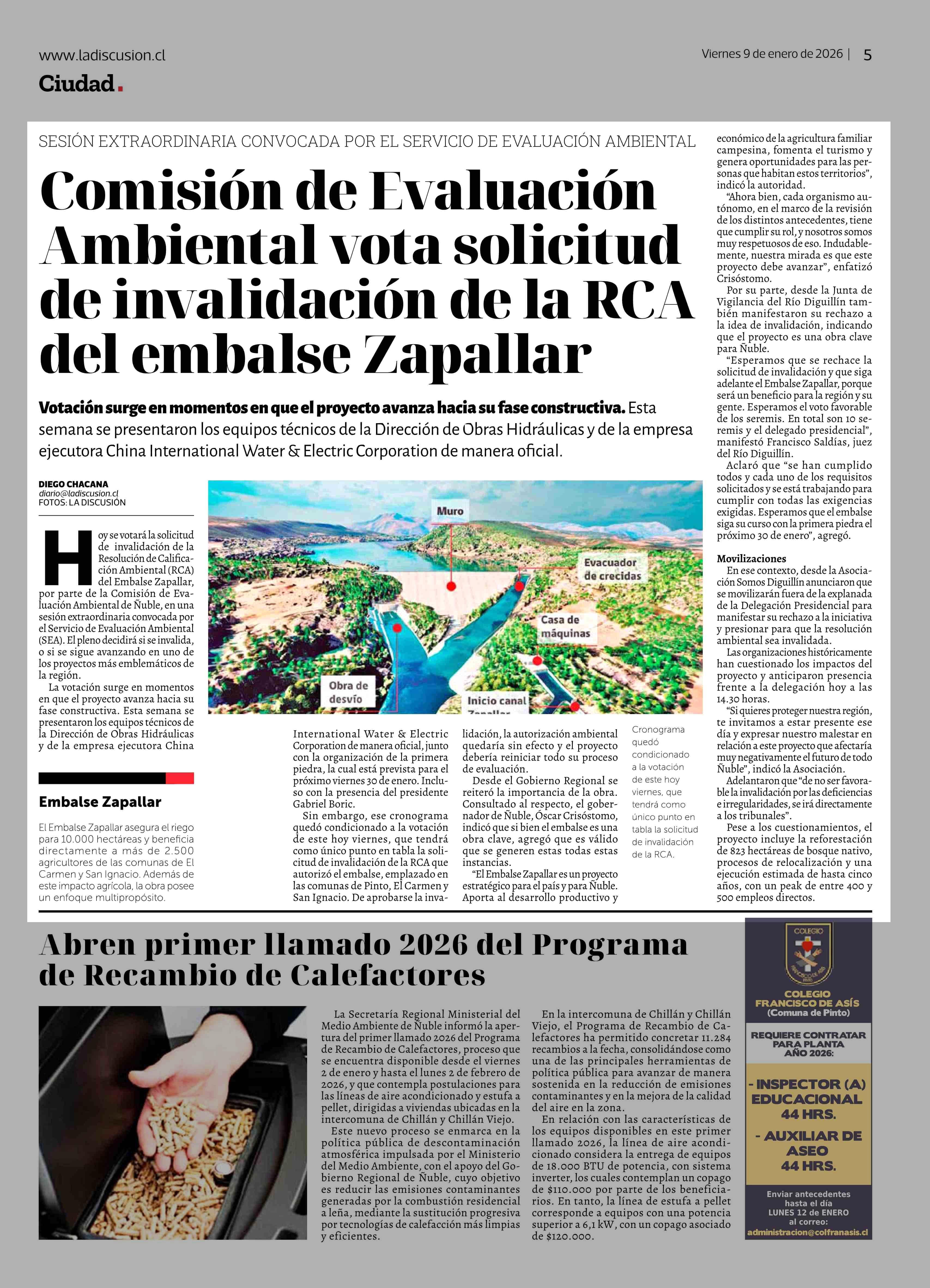 Comisión de Evaluación Ambiental vota solicitud de invalidación de la RCA del embalse Zapallar 09-01-2026 La Discusión |