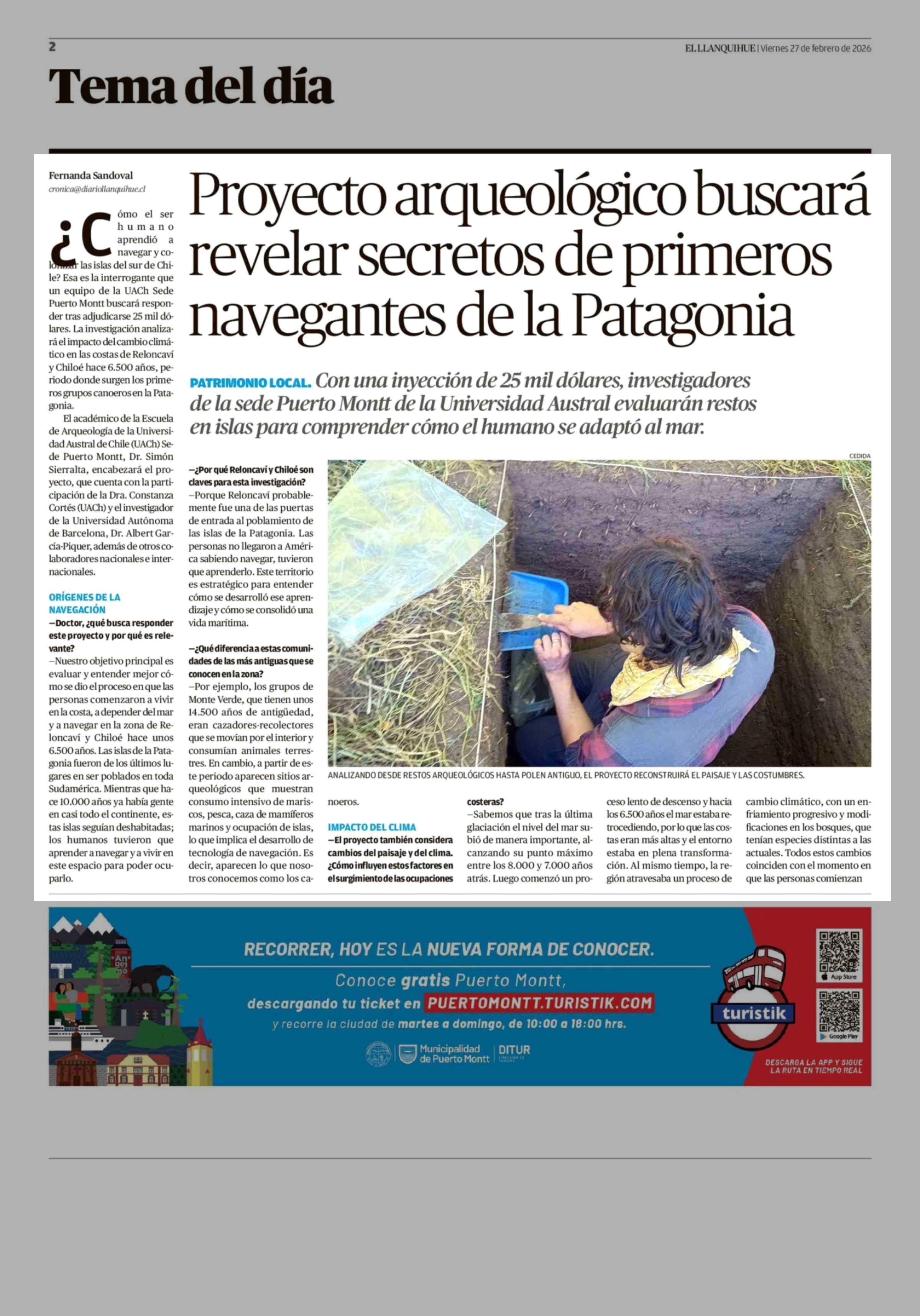 Proyecto arqueológico buscará revelar secretos de primeros navegantes de la Patagonia 27-02-2026 El Llanquihue |