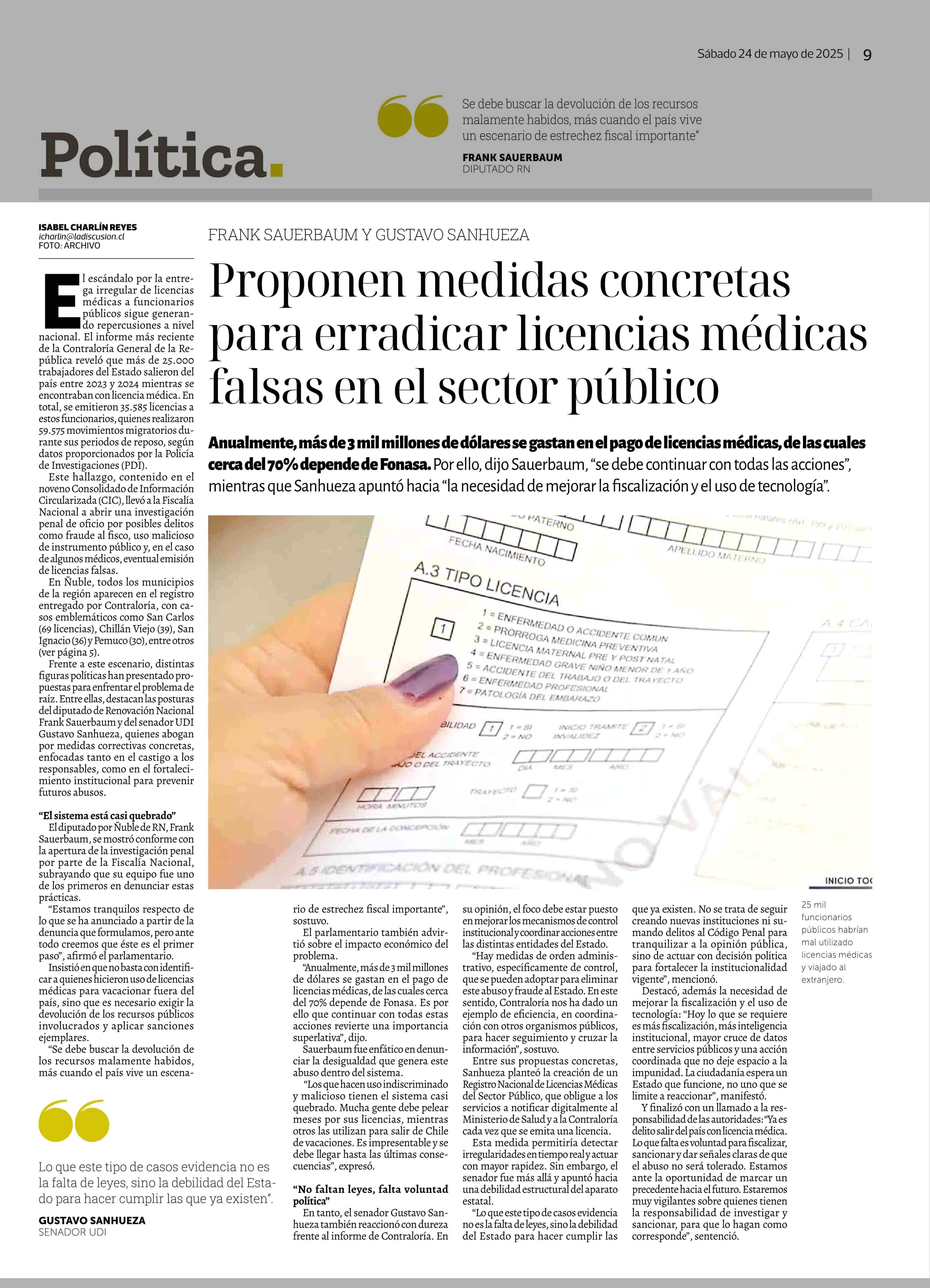 Proponen medidas concretas para erradicar licencias médicas falsas en el sector público 24-05-2025 La Discusión |