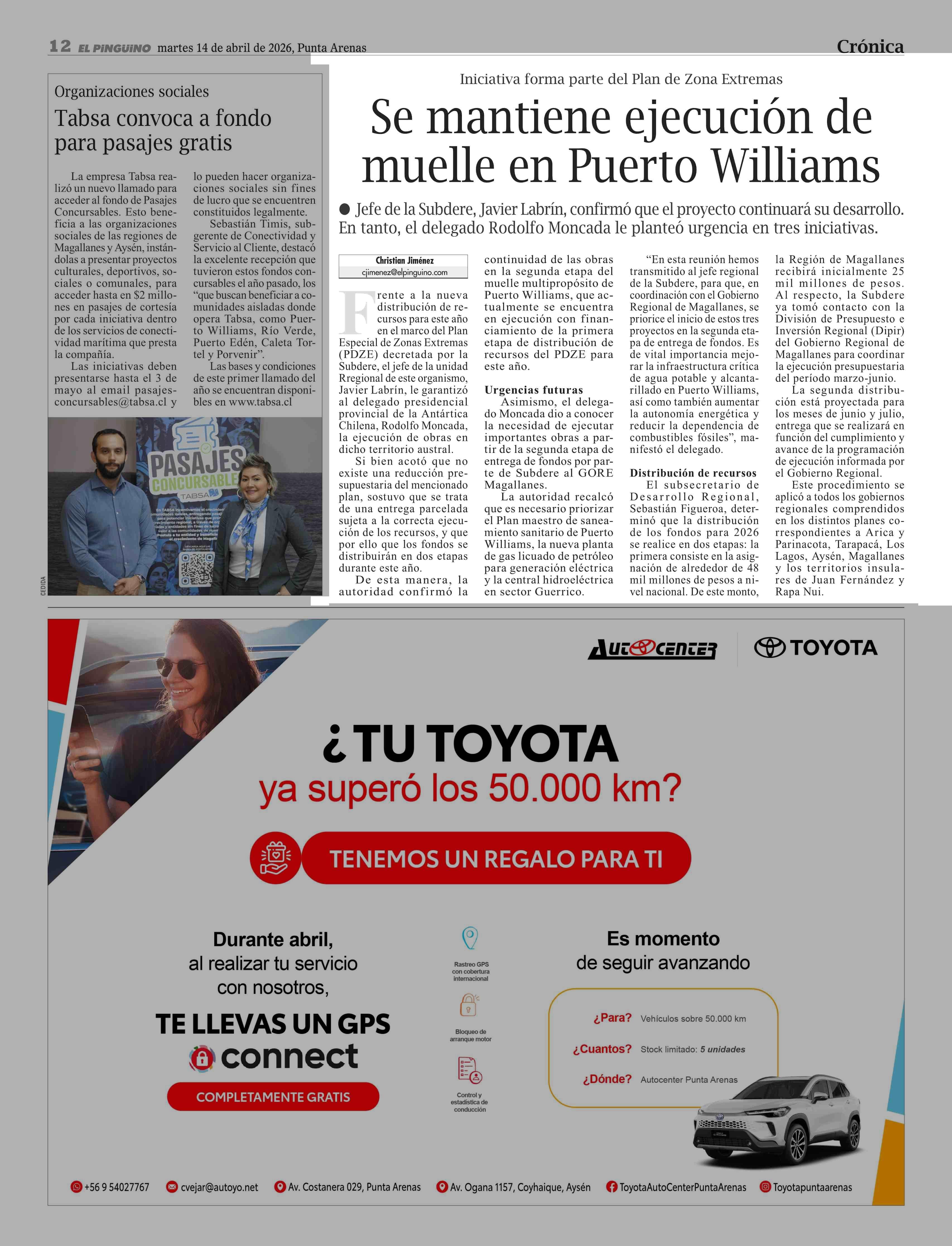 | Fecha: | 14-04-2026 | Sector: | Noticia general | Región: | Región de Magallanes y de la Antártica Chilena |