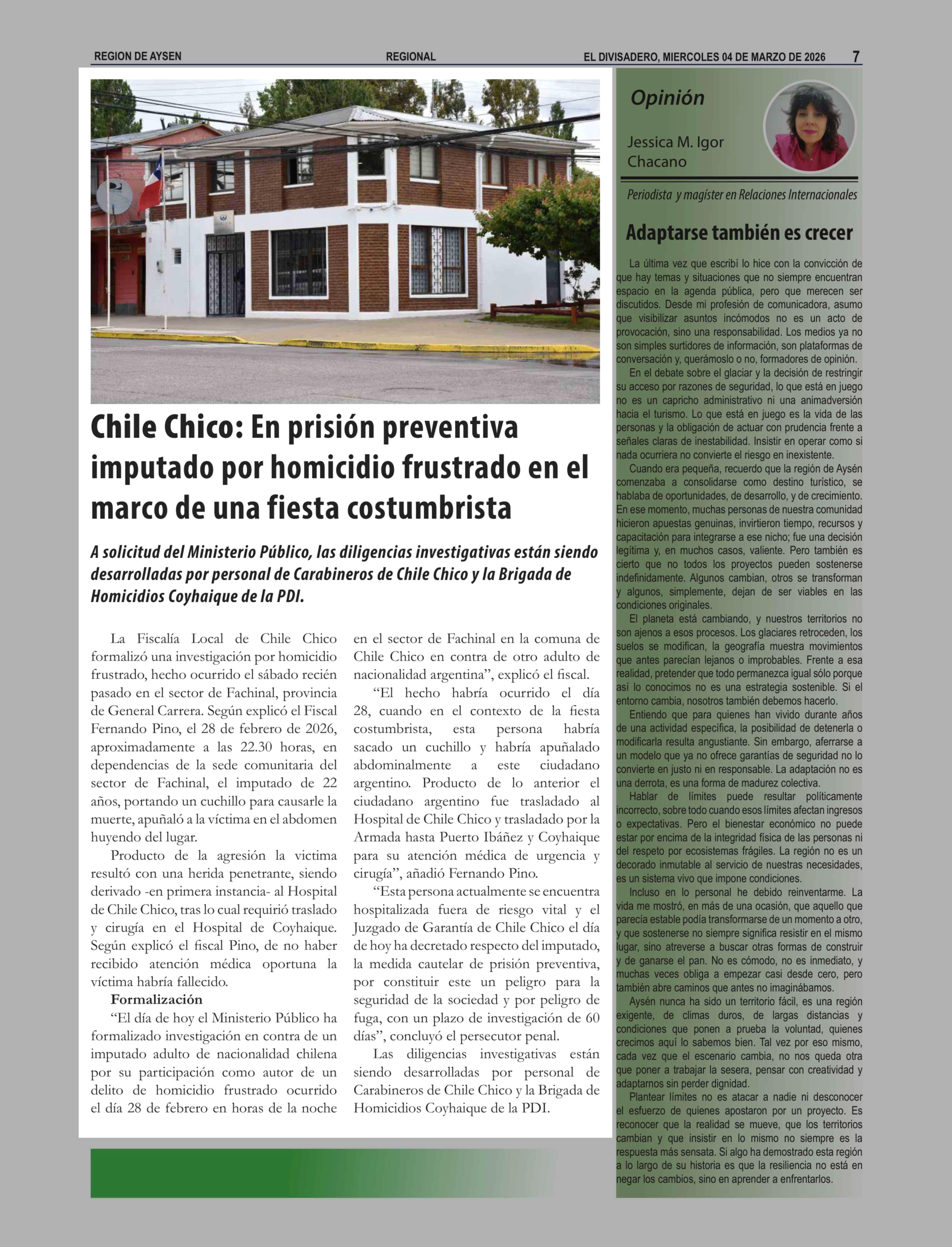 Fecha: 04-03-2026 Sector: Noticia general Región: Región Aysén del General Carlos Ibáñez del Campo