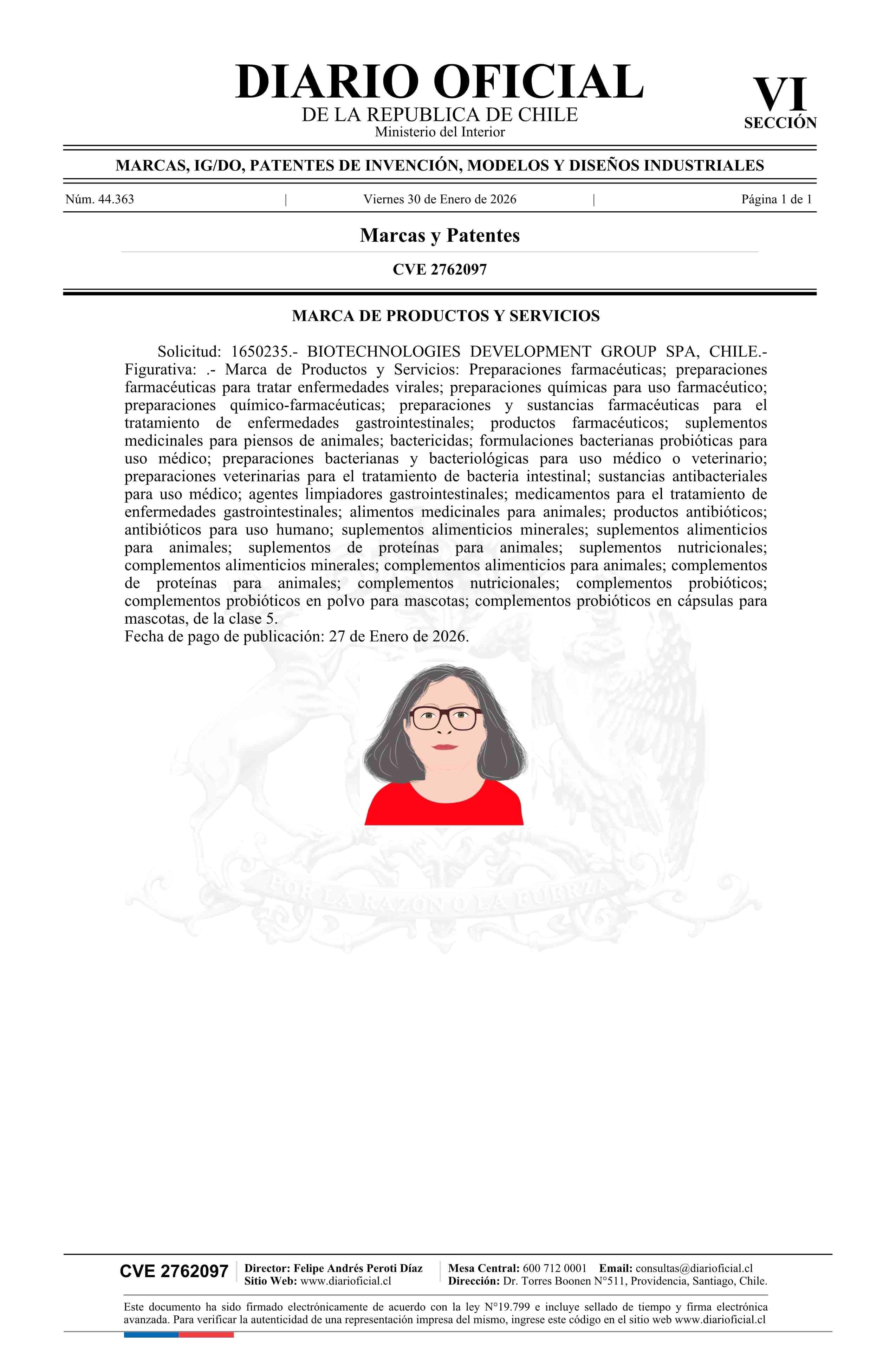 Título: Solicitud número 1650235.- BIOTECHNOLOGIES DEVELOPMENT GROUP SPA