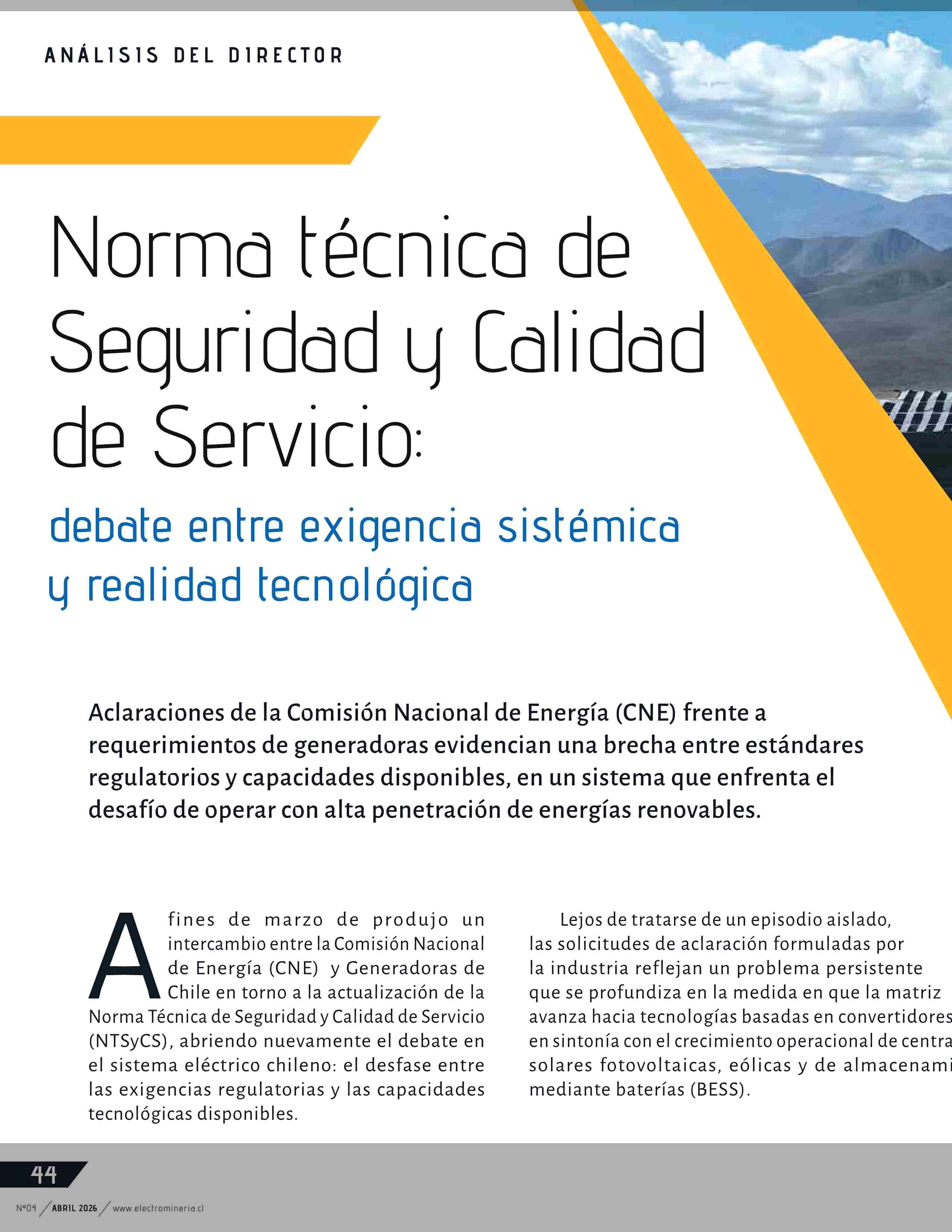 Norma técnica de seguridad y Calidad de Servicio: 09-04-2026 Electrominería |