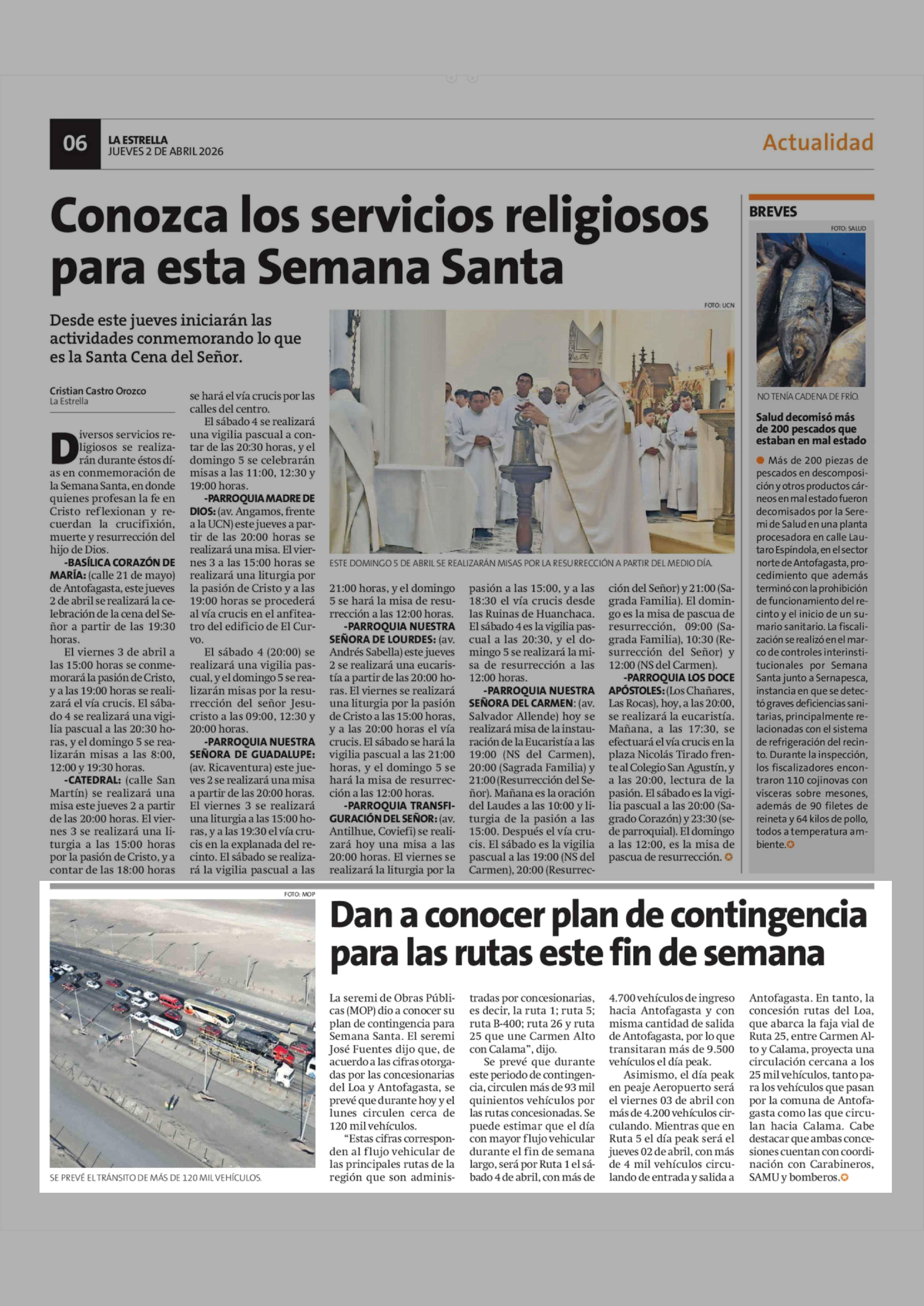 Dan a conocer plan de contingencia para las rutas este fin de semana 02-04-2026 La Estrella de Antofagasta |