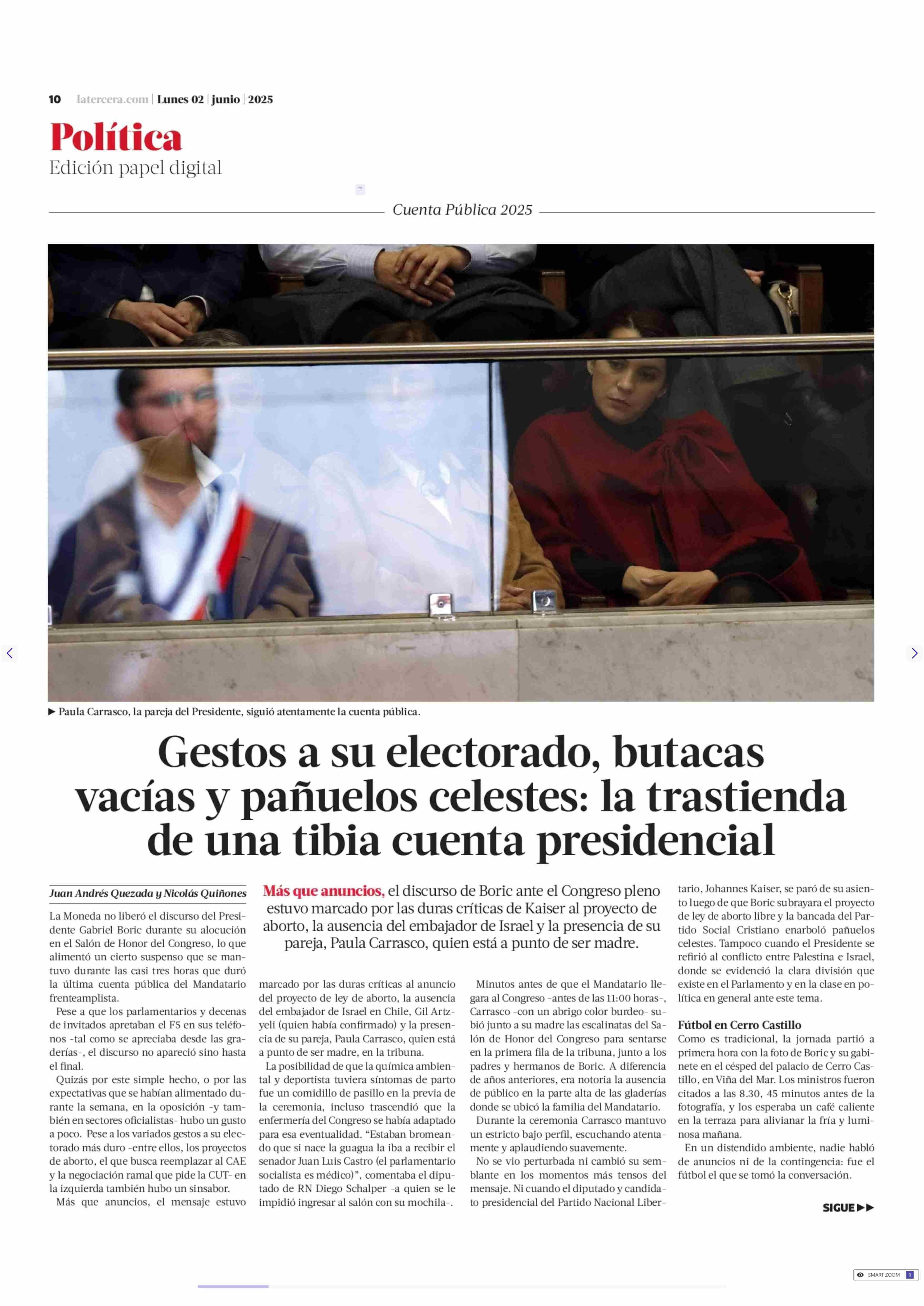 Título: Gestos a su electorado, butacas vacías y pañuelos celestes: la trastienda de una tibia cuenta presidencial
