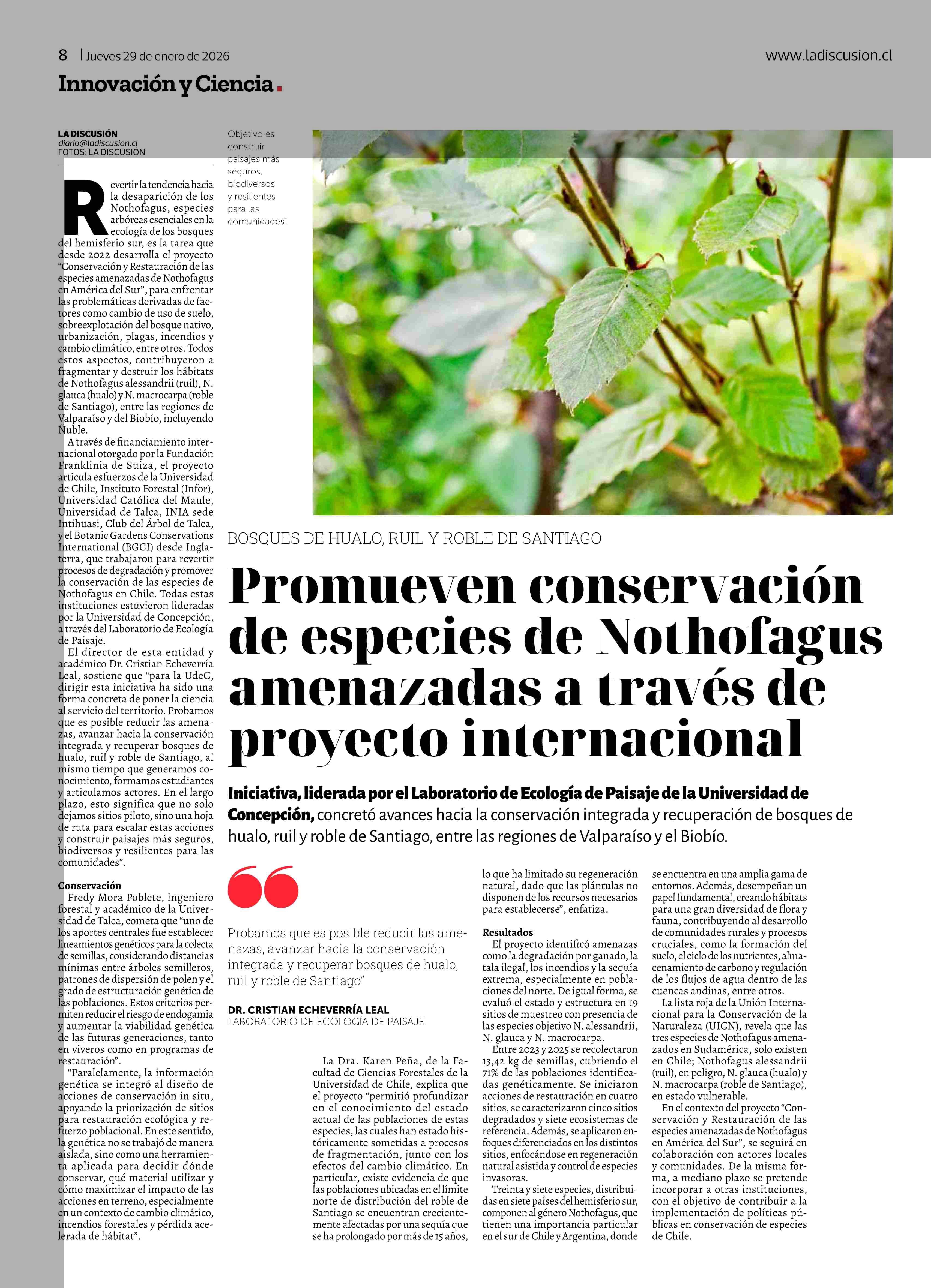 Promueven conservación de especies de Nothofagus amenazadas a través de proyecto internacional 29-01-2026 La Discusión |