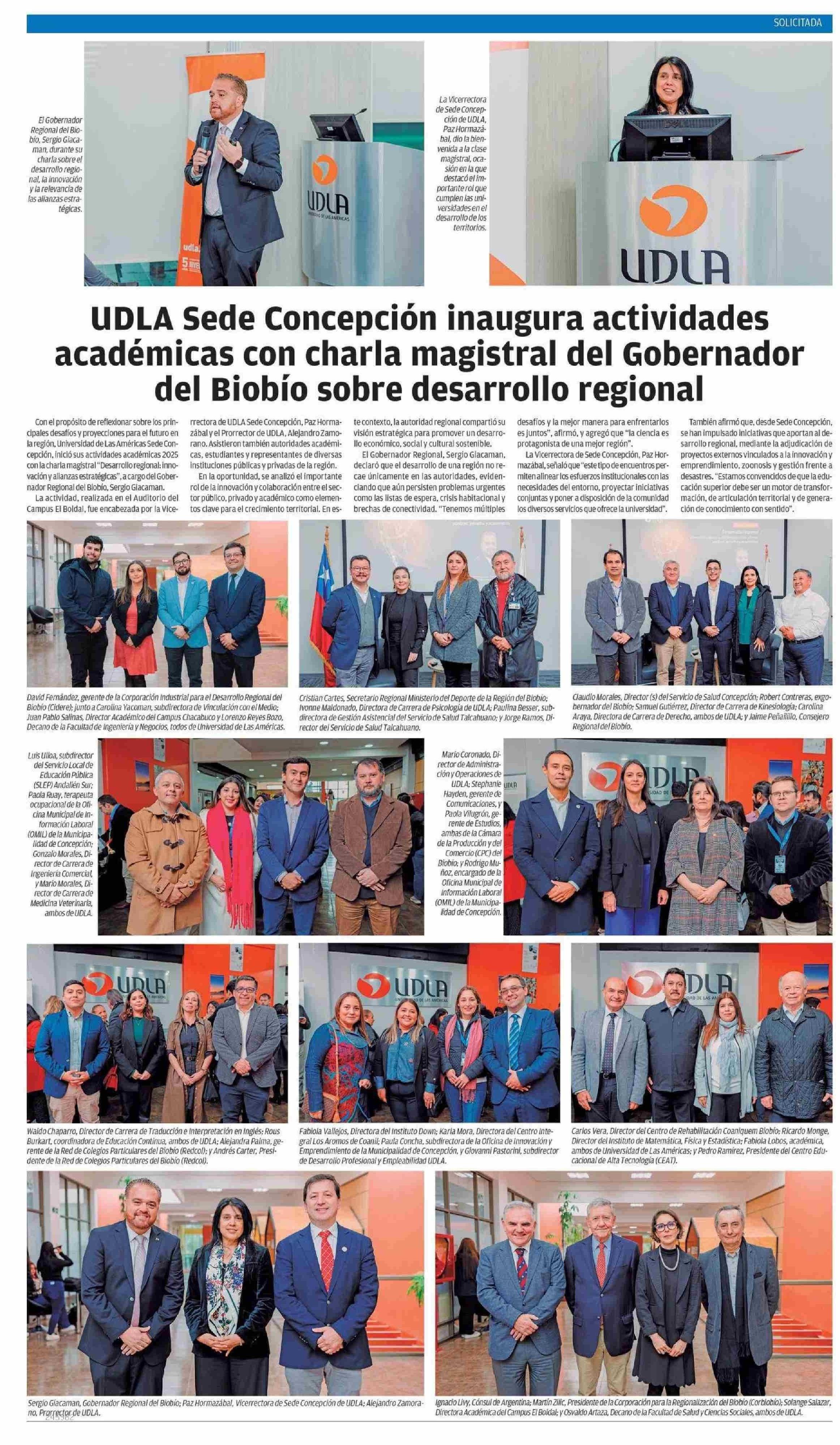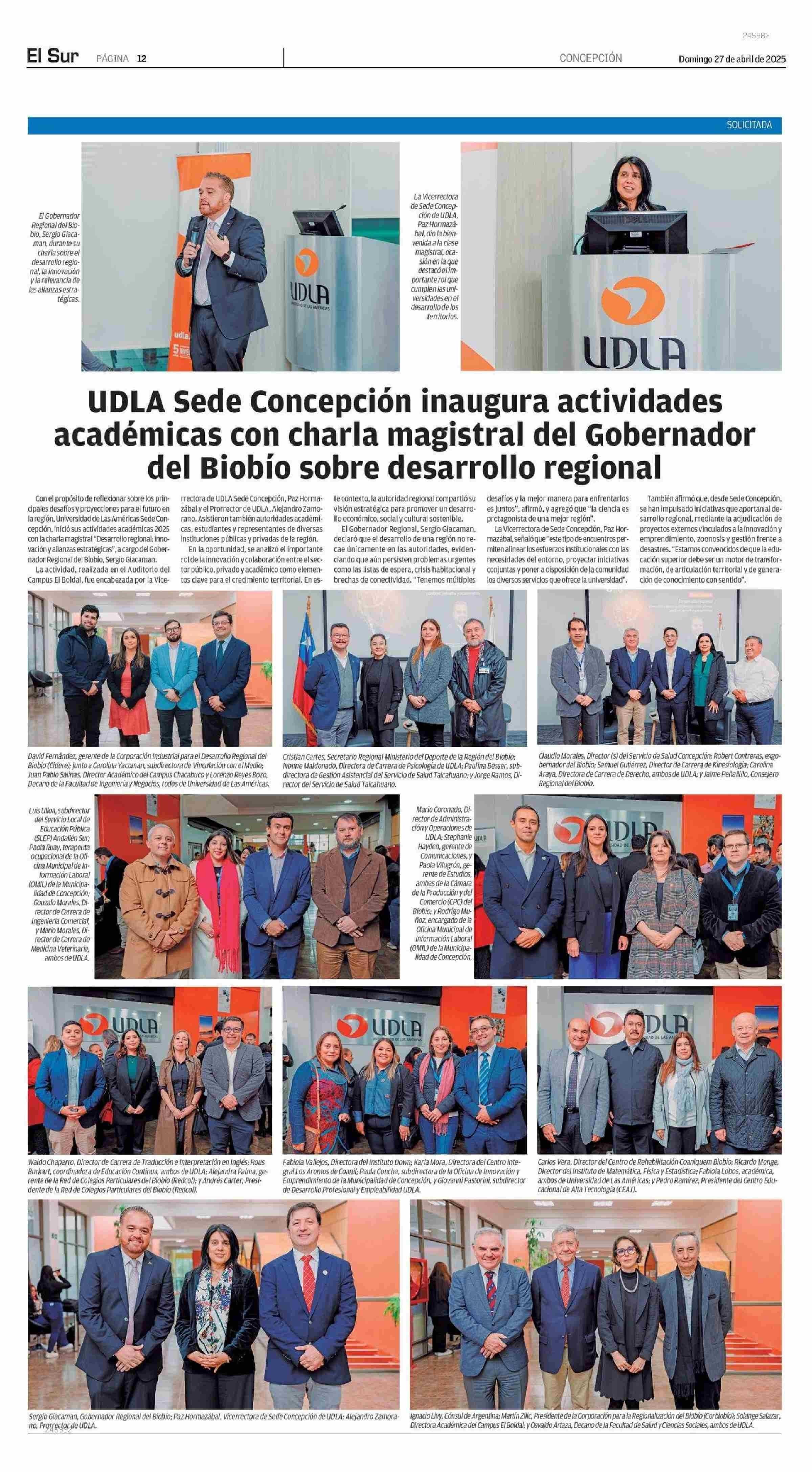 UDLA Sede Concepción inaugura actividades académicas con charla magistral del Gobernador del Biobío sobre desarrollo regional 27-04-2025 El Sur |