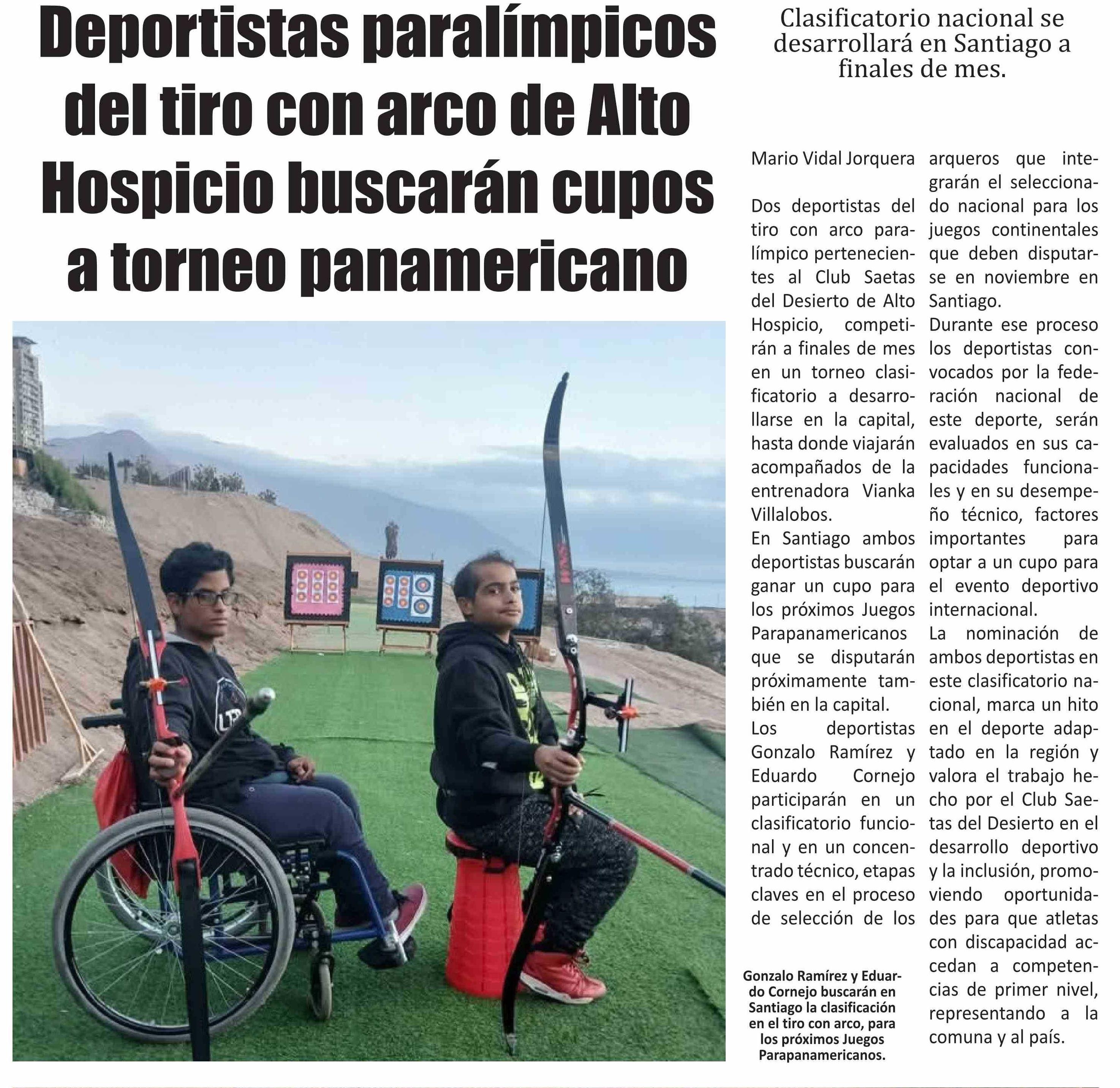 | Título: | Deportistas paralímpicos del tiro con arco de Alto Hospicio buscarán cupos a torneo panamericano |