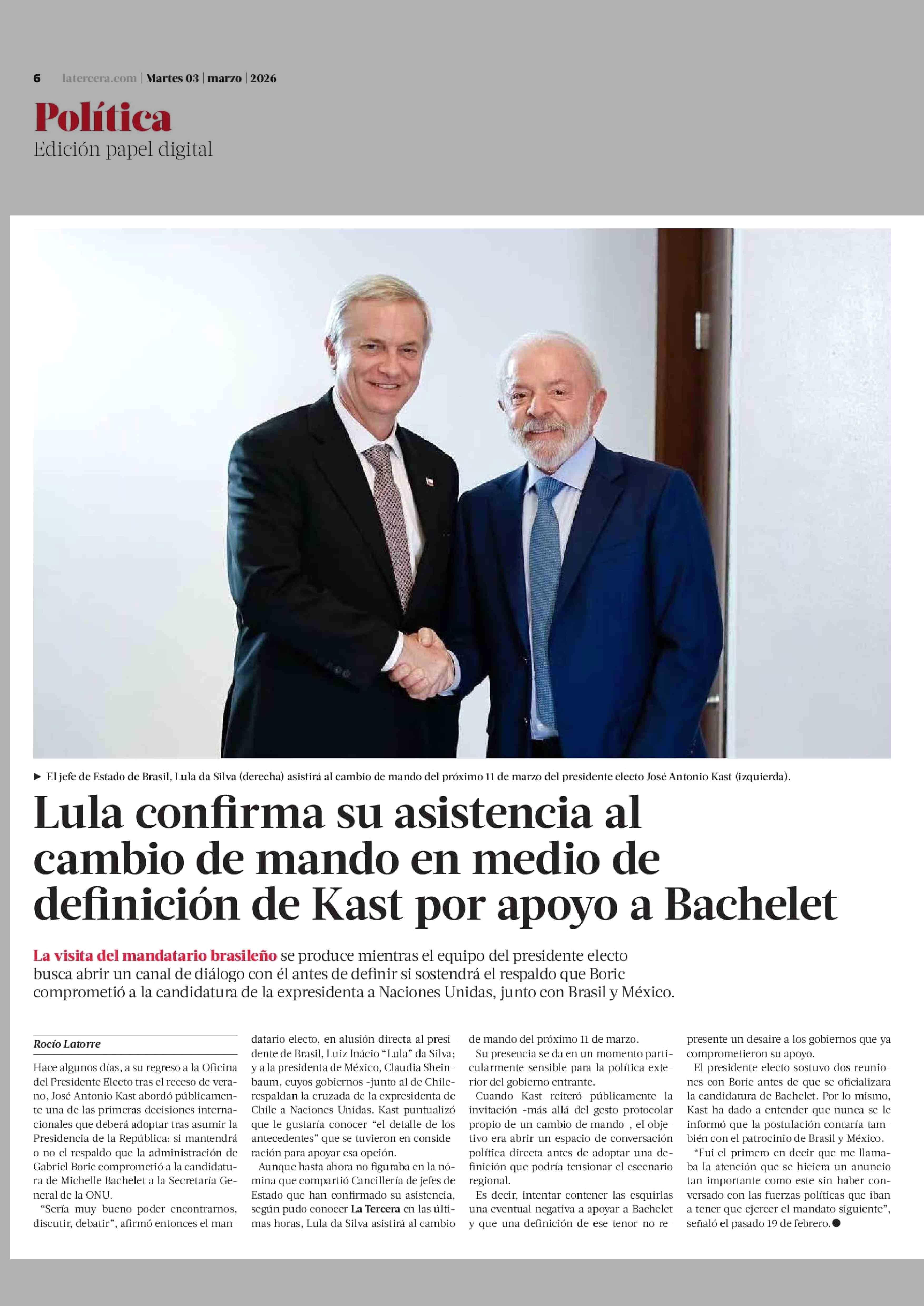 Título: Lula confirma su asistencia al cambio de mando en medio de definición de Kast por apoyo a Bachelet