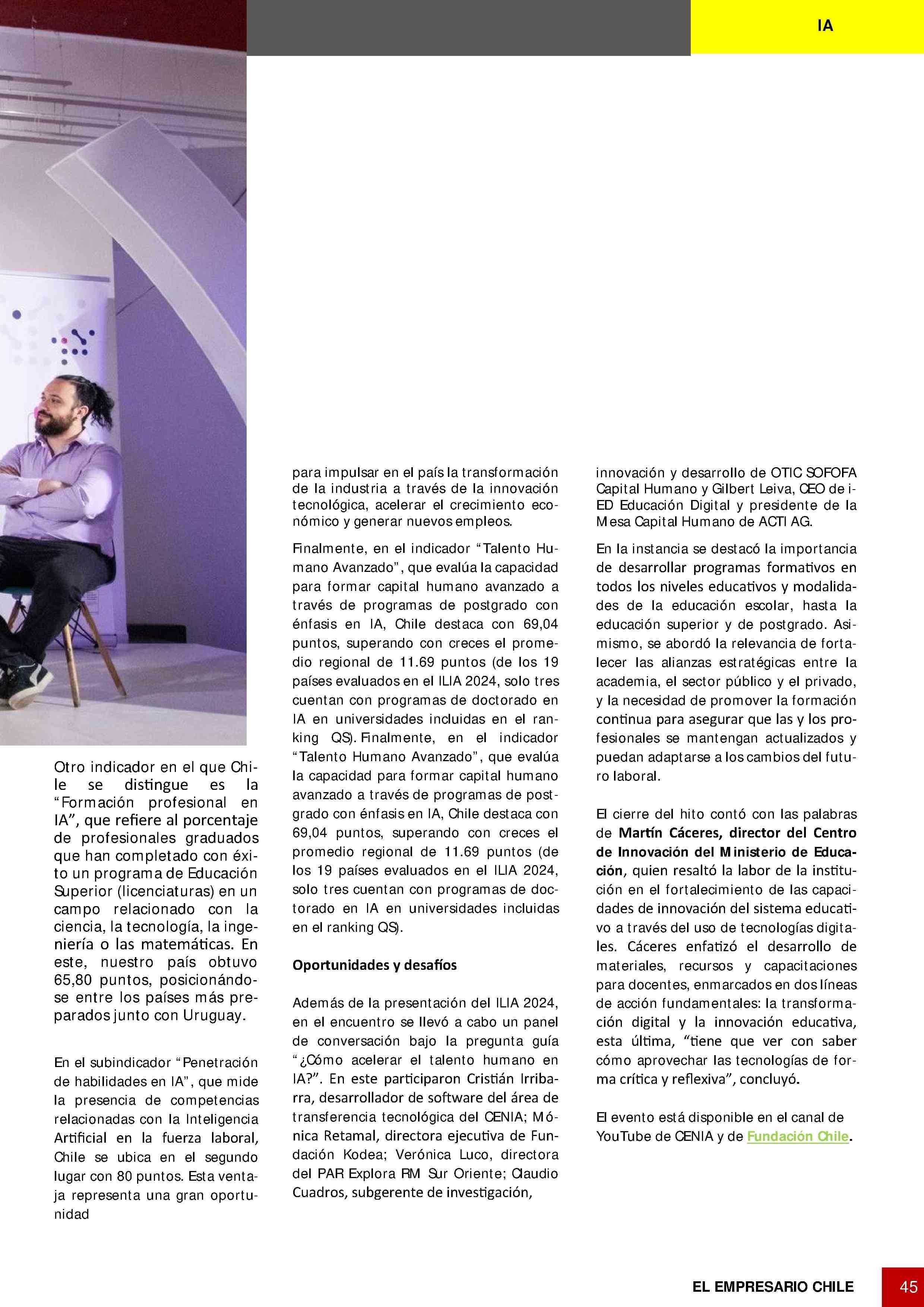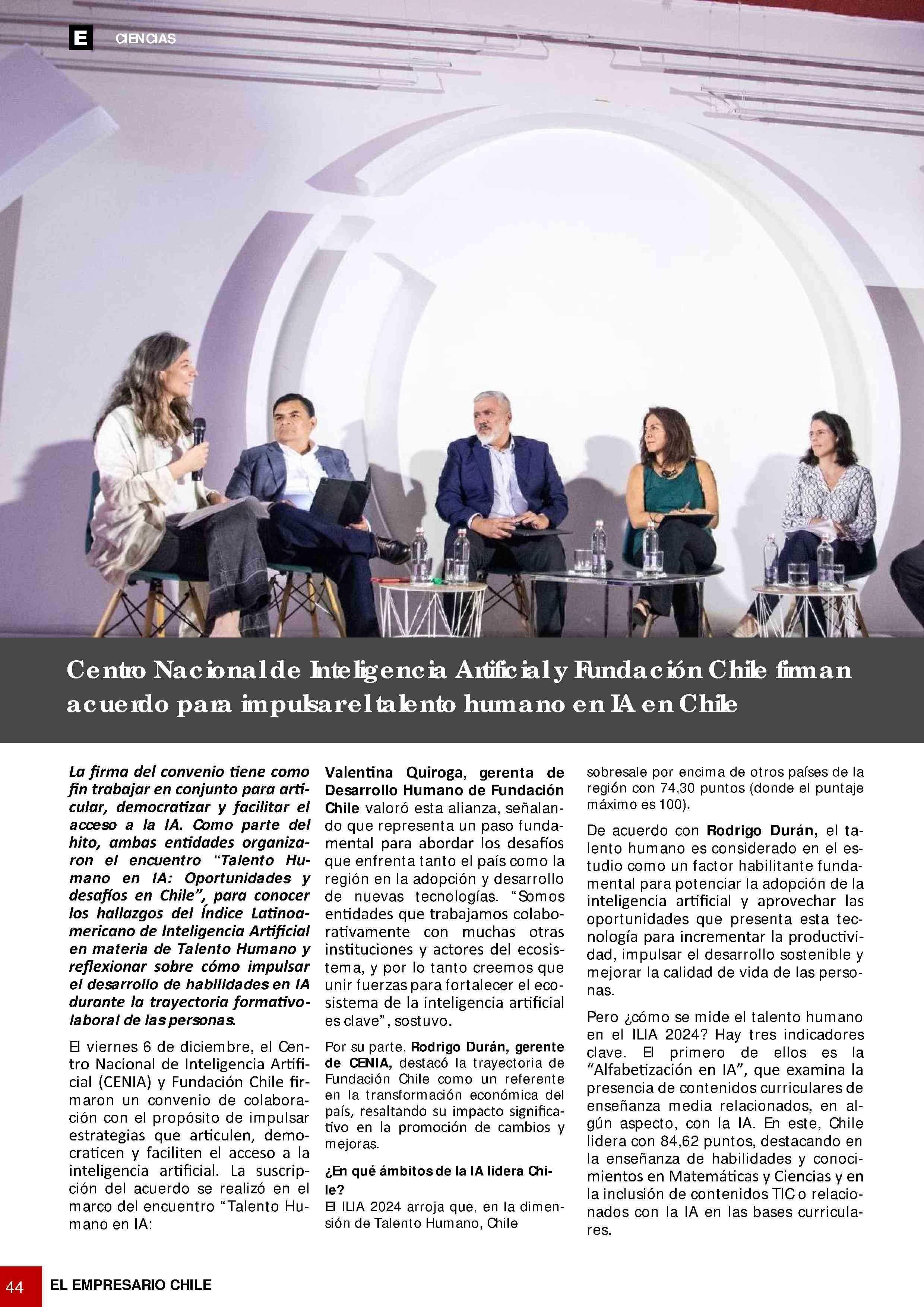 Centro Nacional de Hislgendio Artificial y Fundación Chile firman acuerdo para impulsar el talento humano en iA en Chile 14-01-2025 Tdesperanza.cl - Chile |