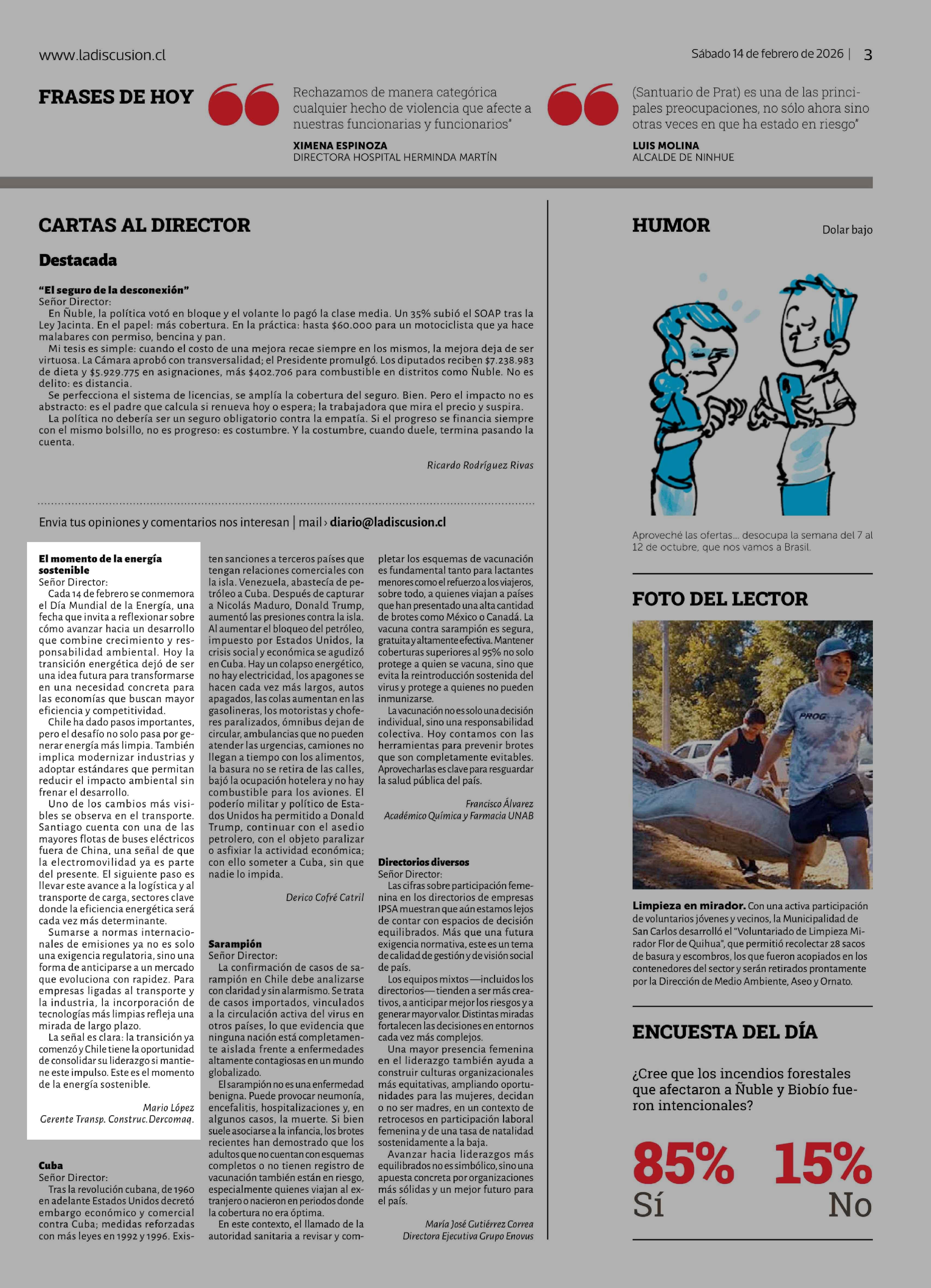 Fecha: 14-02-2026 Sector: Cartas Región: Región del Ñuble