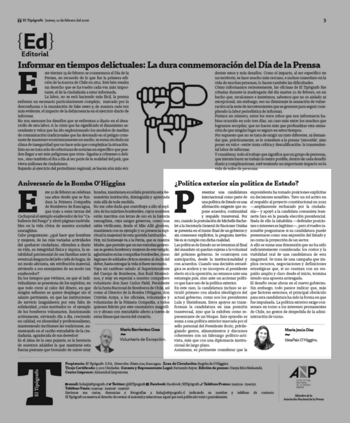 | Fecha: | 12-02-2026 | Sector: | Columnas de Opinión | Región: | Región del Libertador General Bernardo O'Higgins |
