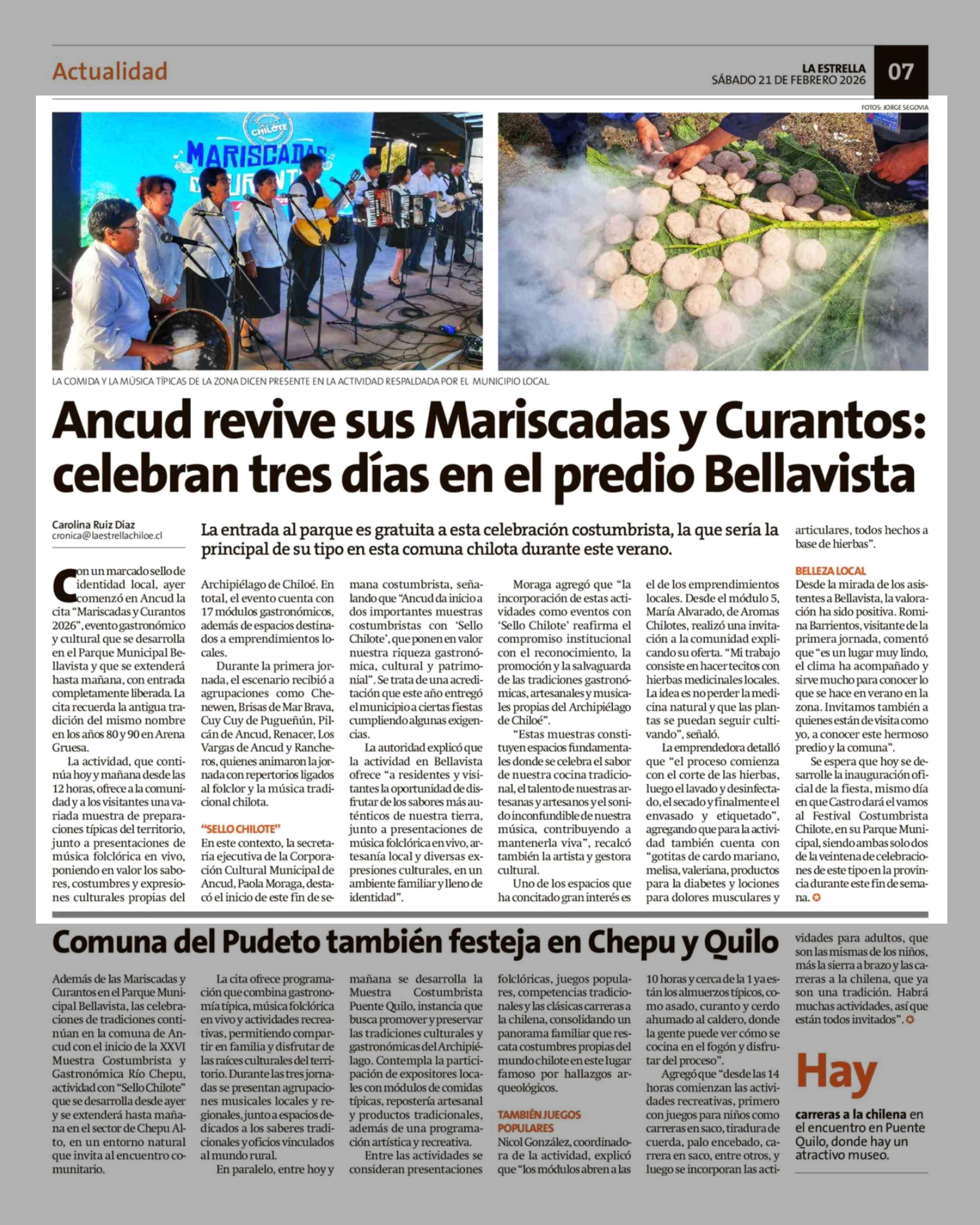 Ancud revive sus Mariscadas y Curantos: celebran tres días en el predio Bellavista 21-02-2026 La Estrella de Chiloé |