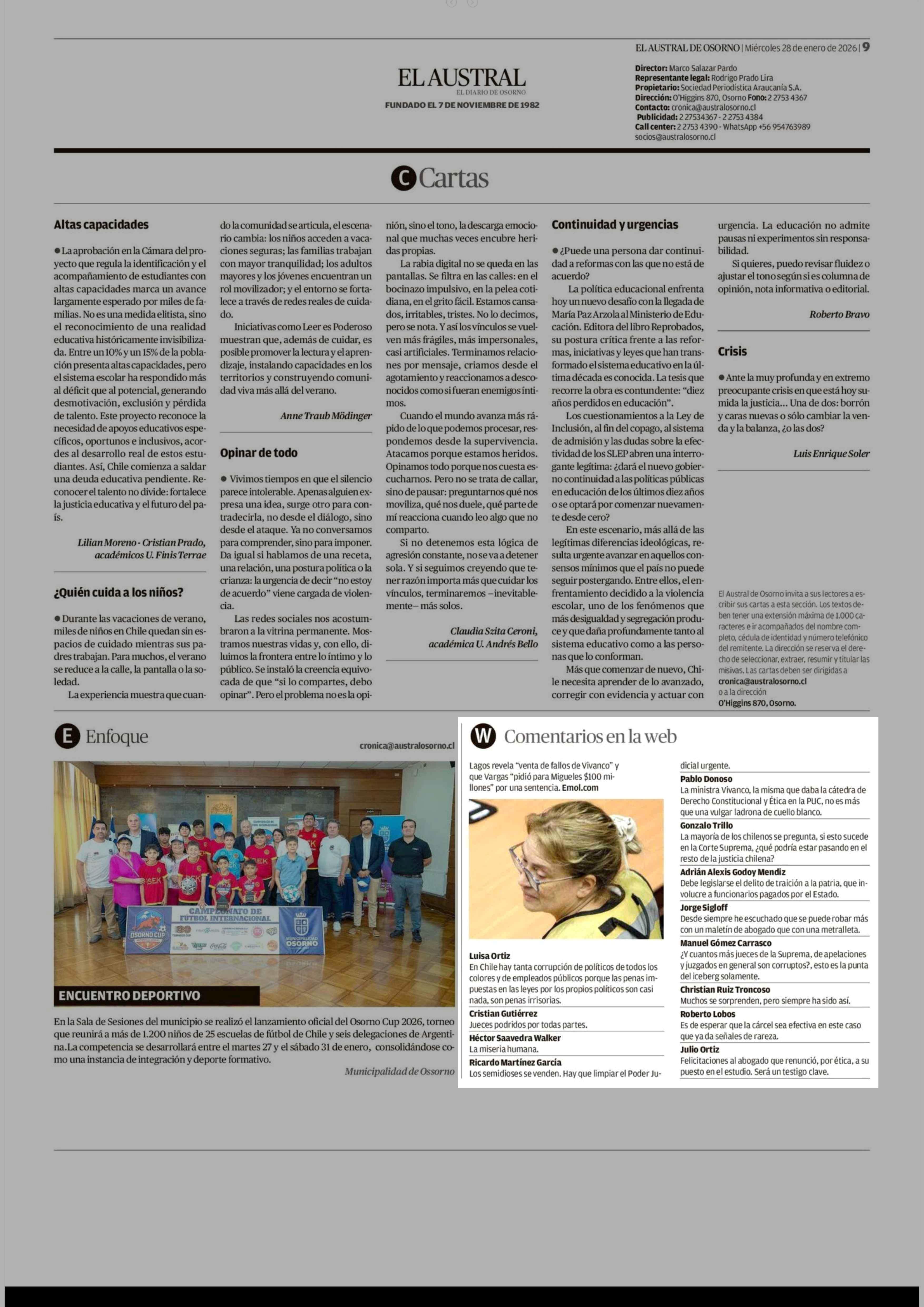 W Comentarios en la web 28-01-2026 El Austral de Osorno |