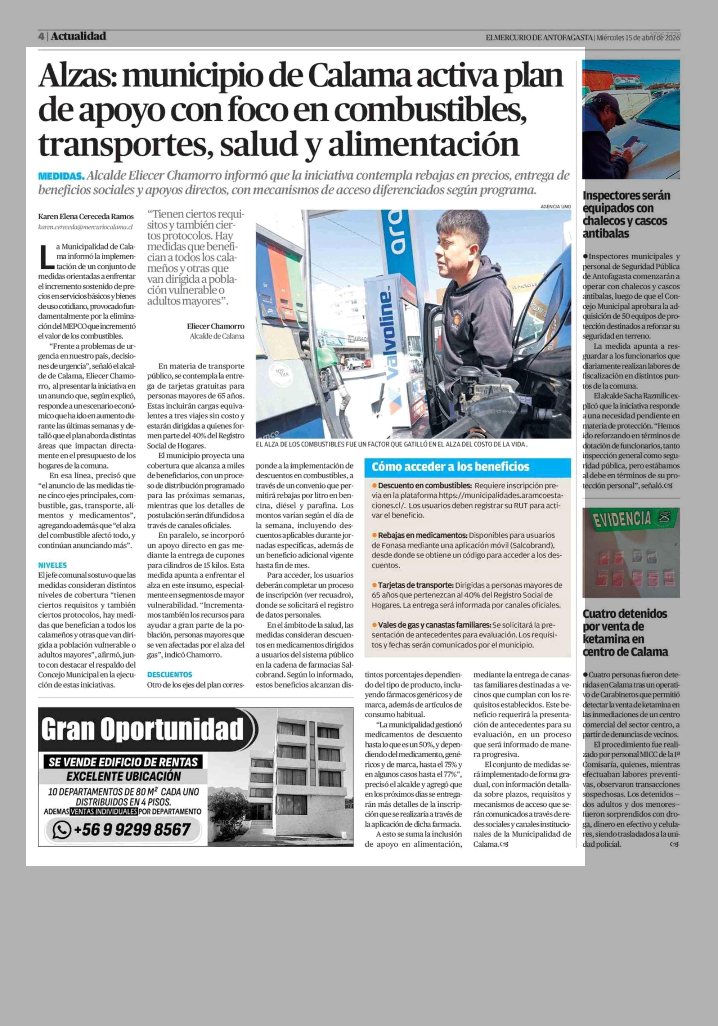 Alzas: municipio de Calama activa plan de apoyo con foco en combustibles, transportes, salud y alimentación 15-04-2026 El Mercurio de Antofagasta |