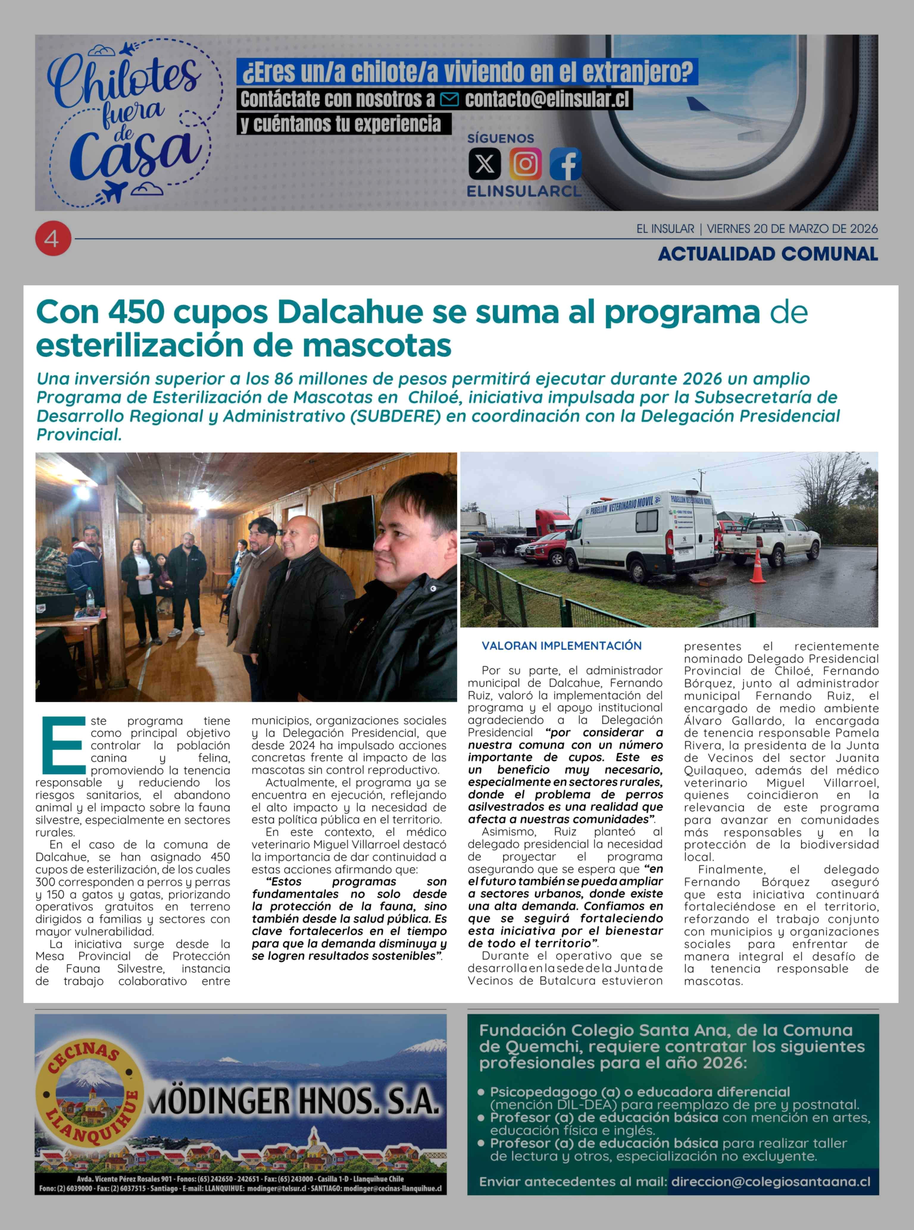 Con 450 cupos Dalcahue se suma al programa de esterilización de mascotas 20-03-2026 El Insular |