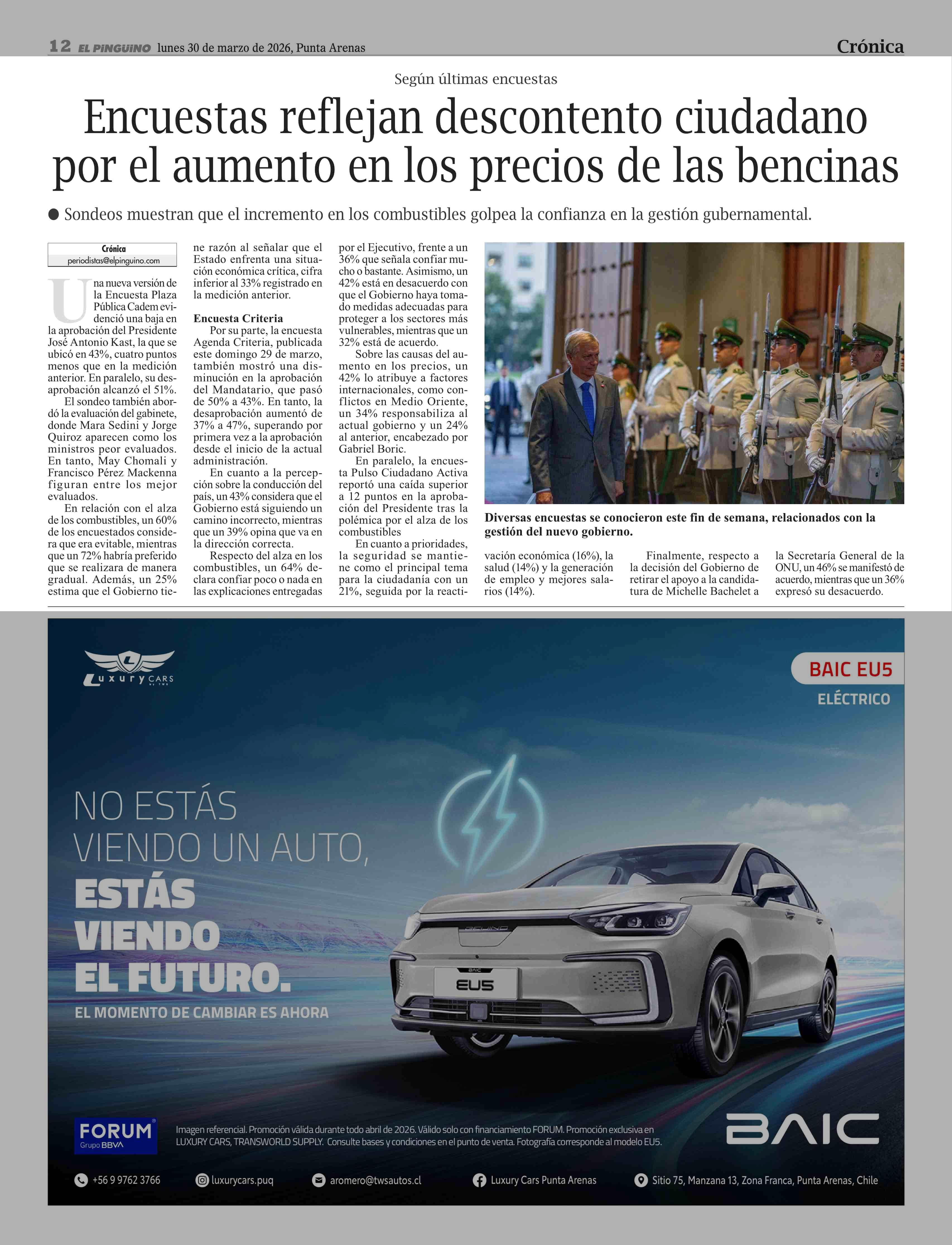 Título: Encuestas reflejan descontento ciudadano por el aumento en los precios de las bencinas