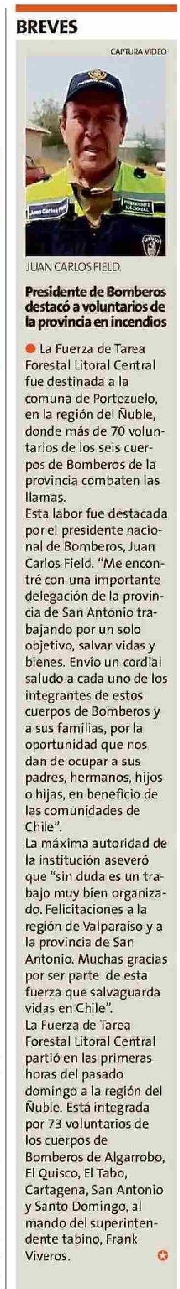 | Título: | Presidente de Bomberos destacó a voluntarios de la provincia en incendios |