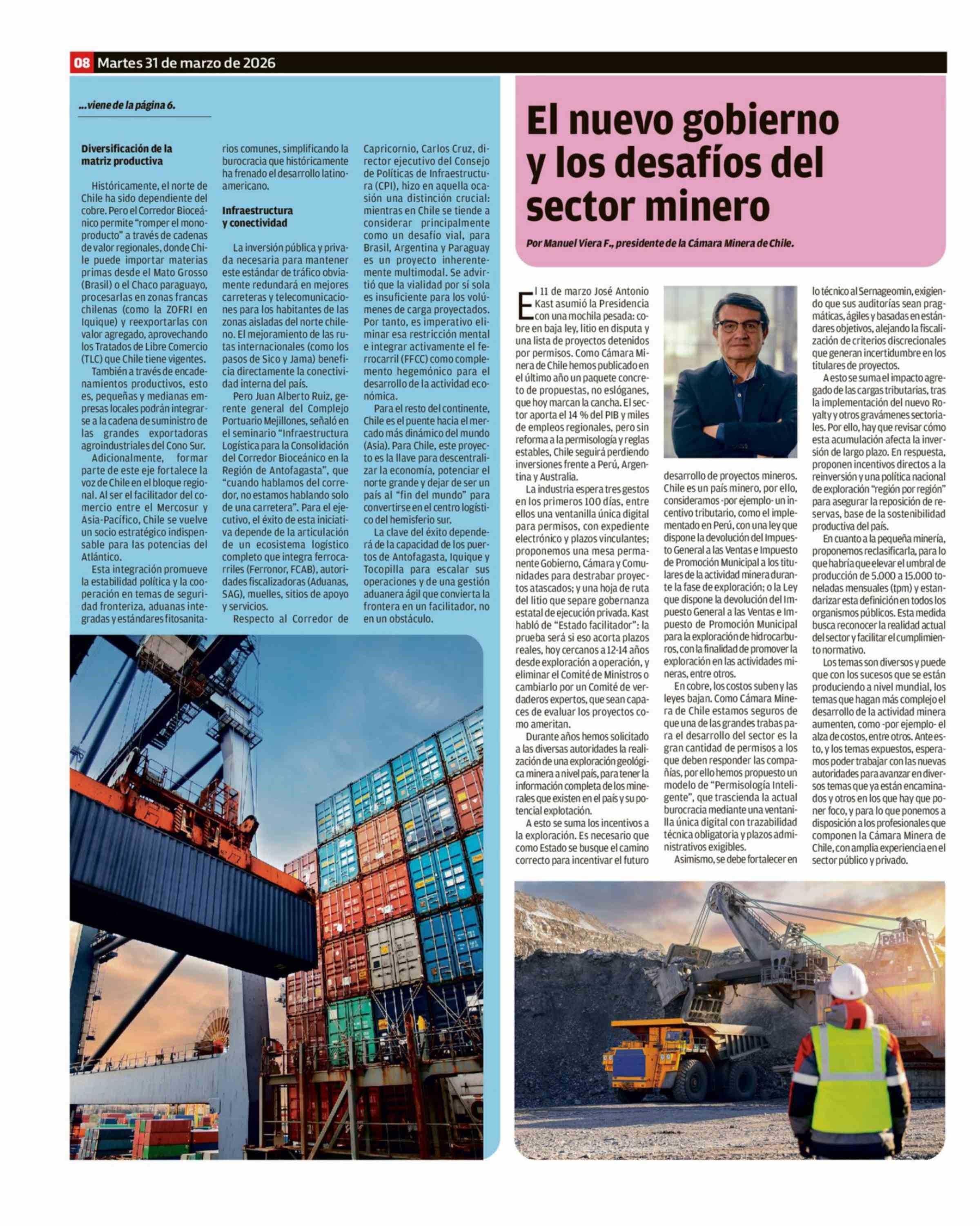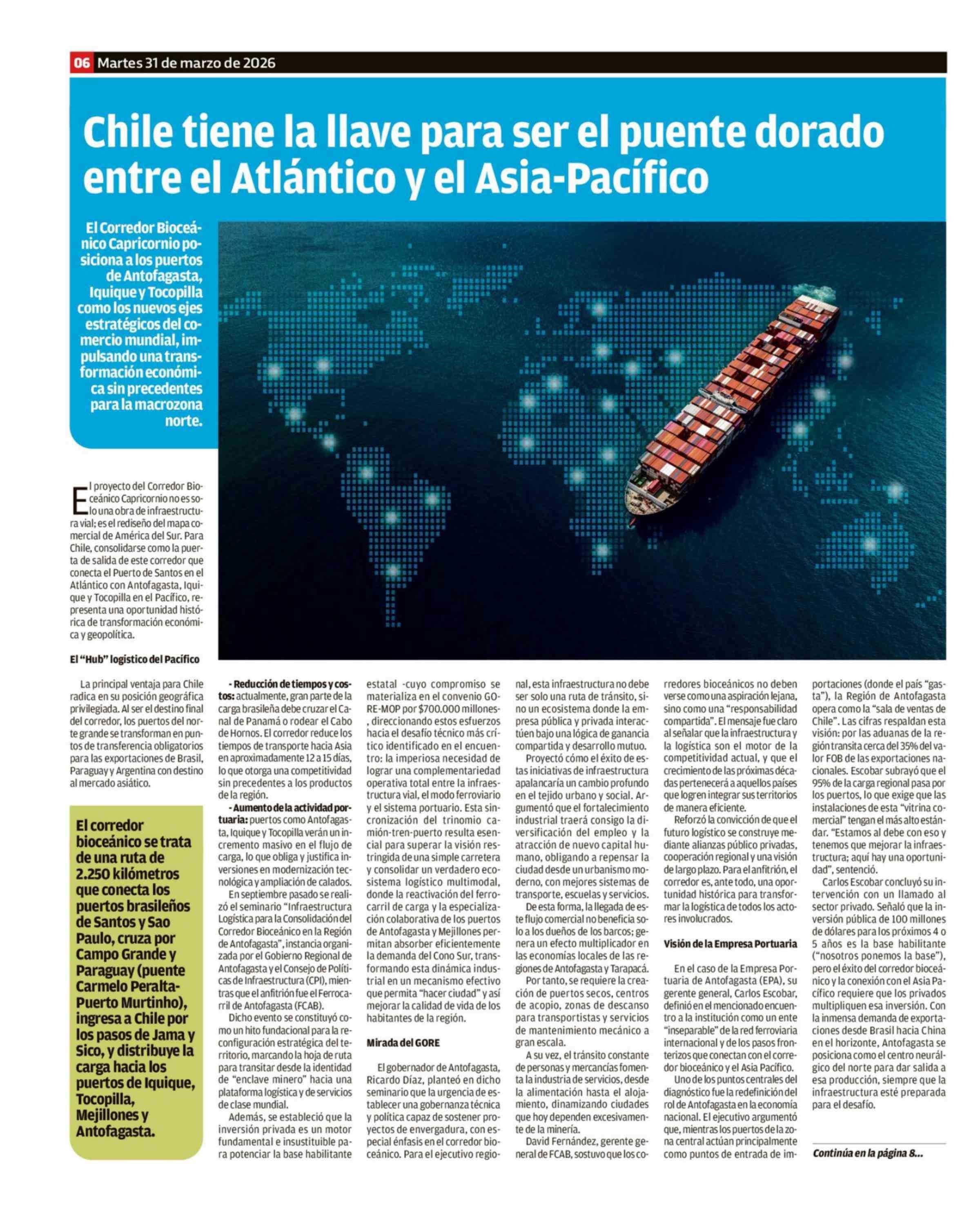 Chile tiene la llave para ser el puente dorado entre el Atlántico y el Asia-Pacífico 31-03-2026 El Mercurio de Calama |