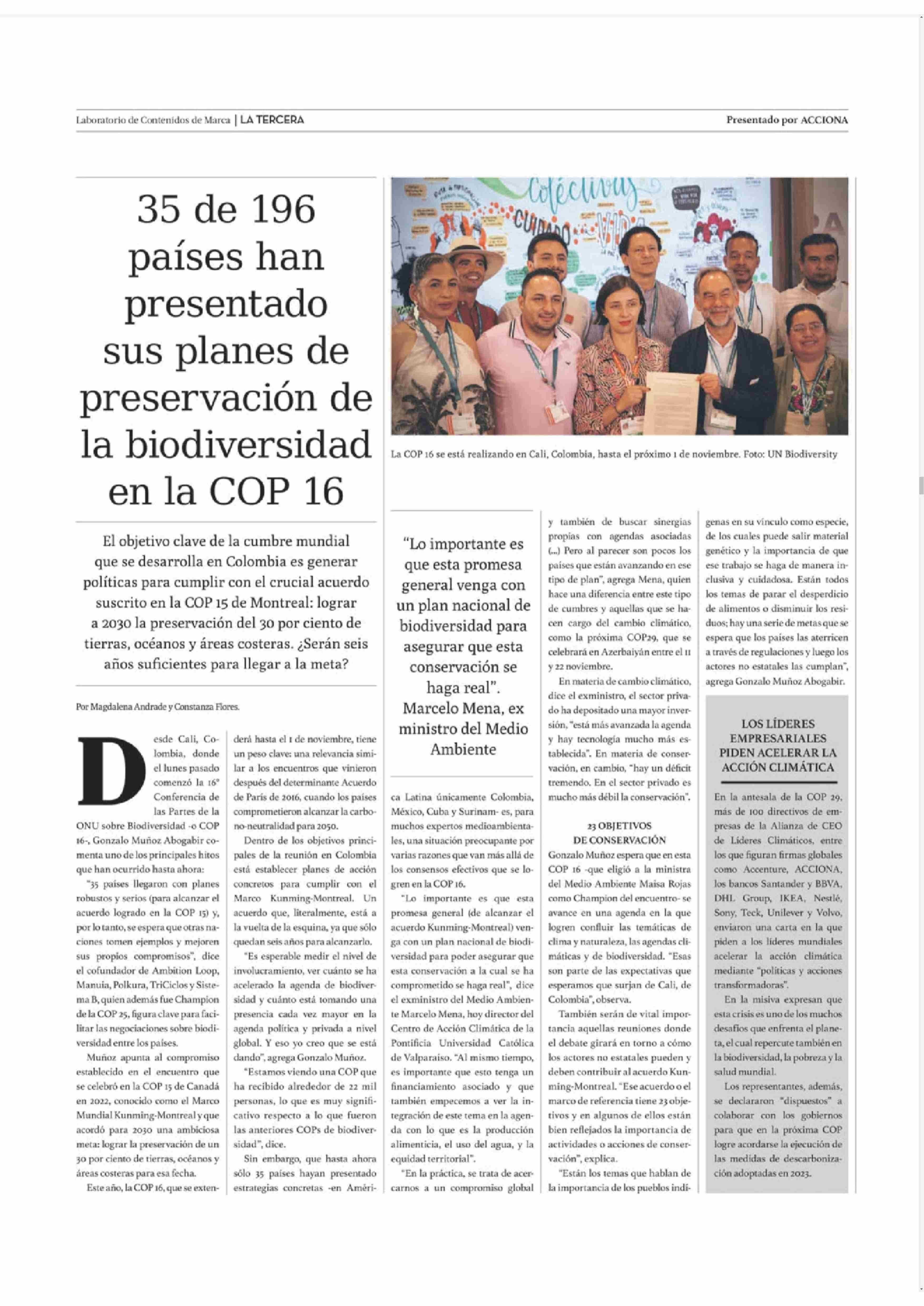 35 de 196 paises han presentado sus planes de preservación de la biodiversidad en la COP 16 26-10-2024 La Tercera |