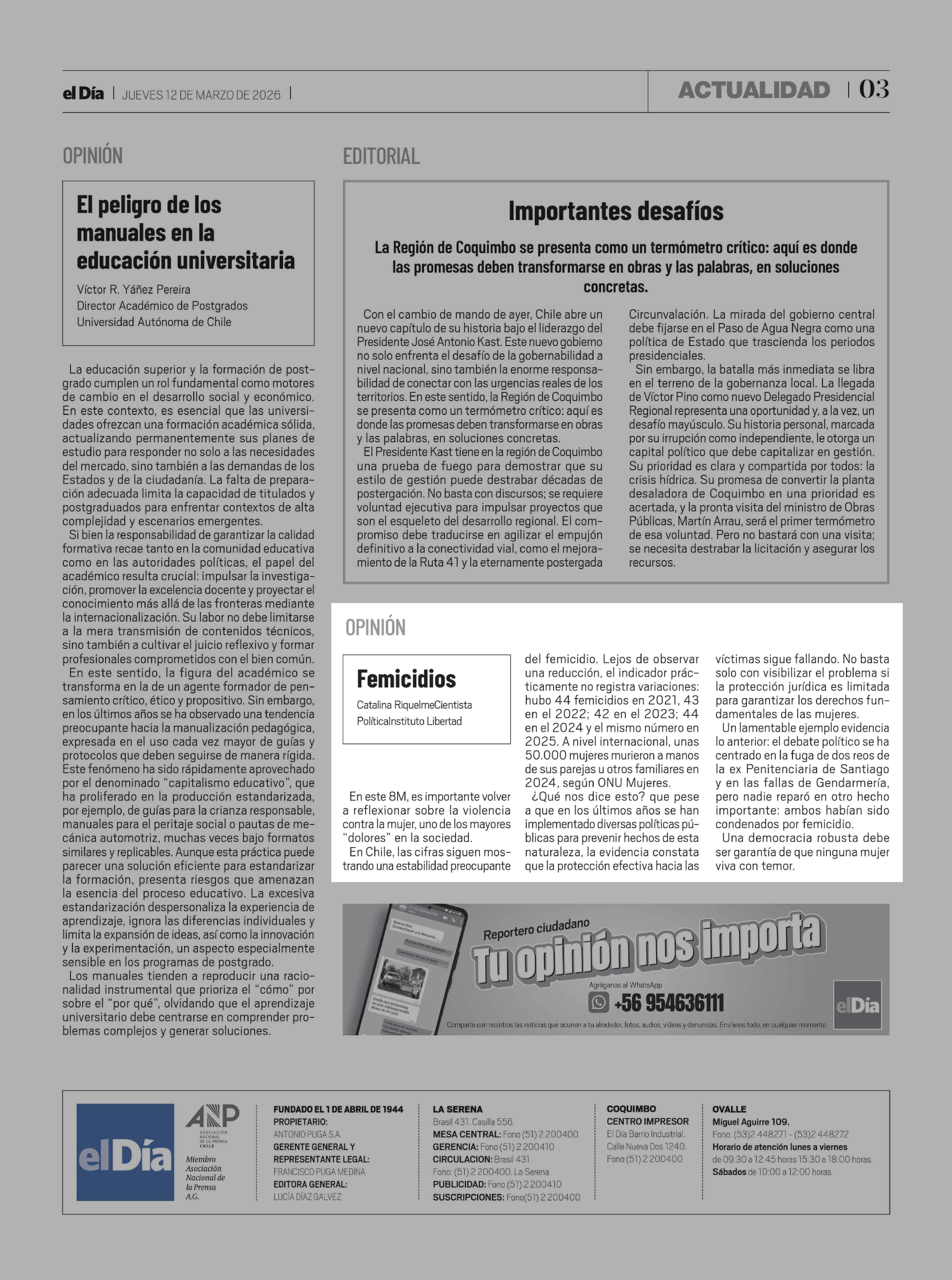 | Fecha: | 12-03-2026 | Sector: | Columnas de Opinión | Región: | Región de Coquimbo |