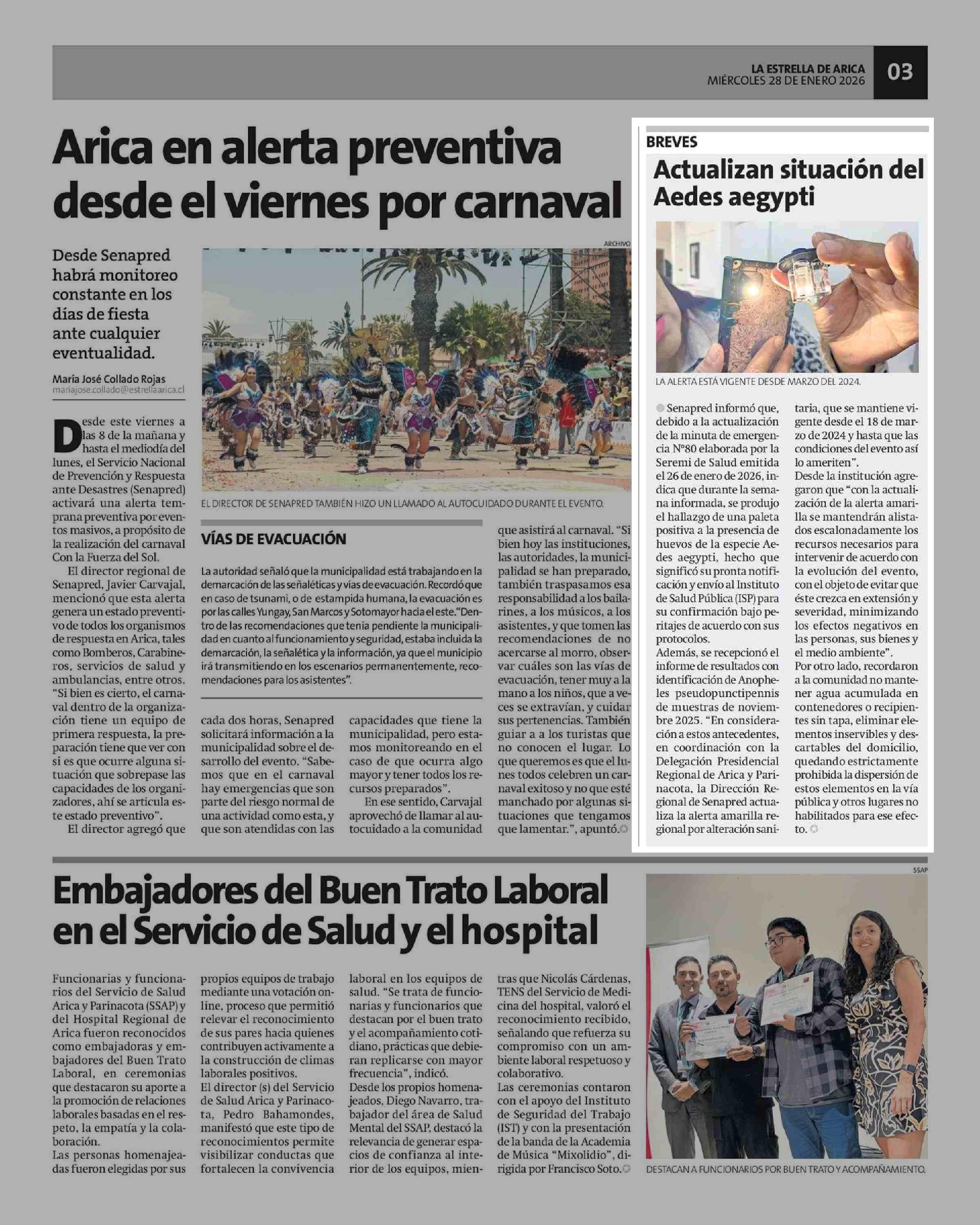 Actualizan situación del Aedes aegypti 28-01-2026 La Estrella de Arica |