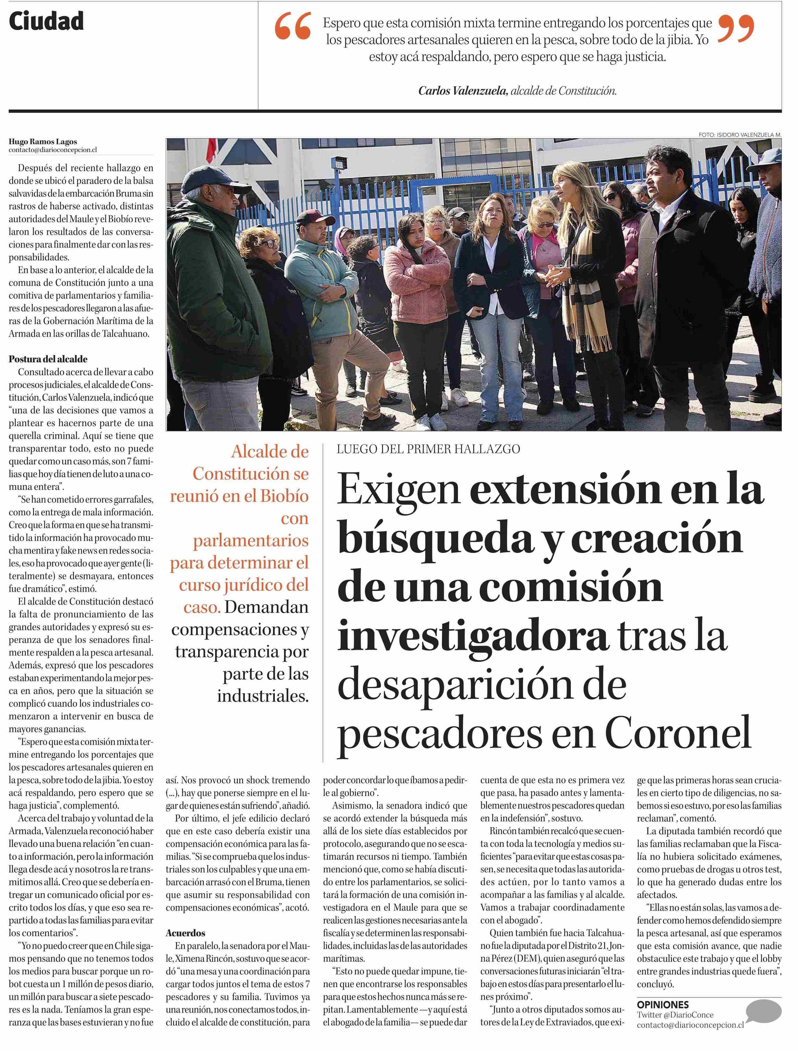 Exigen extensión en la búsqueda y creación de una comisión investigadora tras la desaparición de pescadores en Coronel 07-04-2025 Diario Concepción |