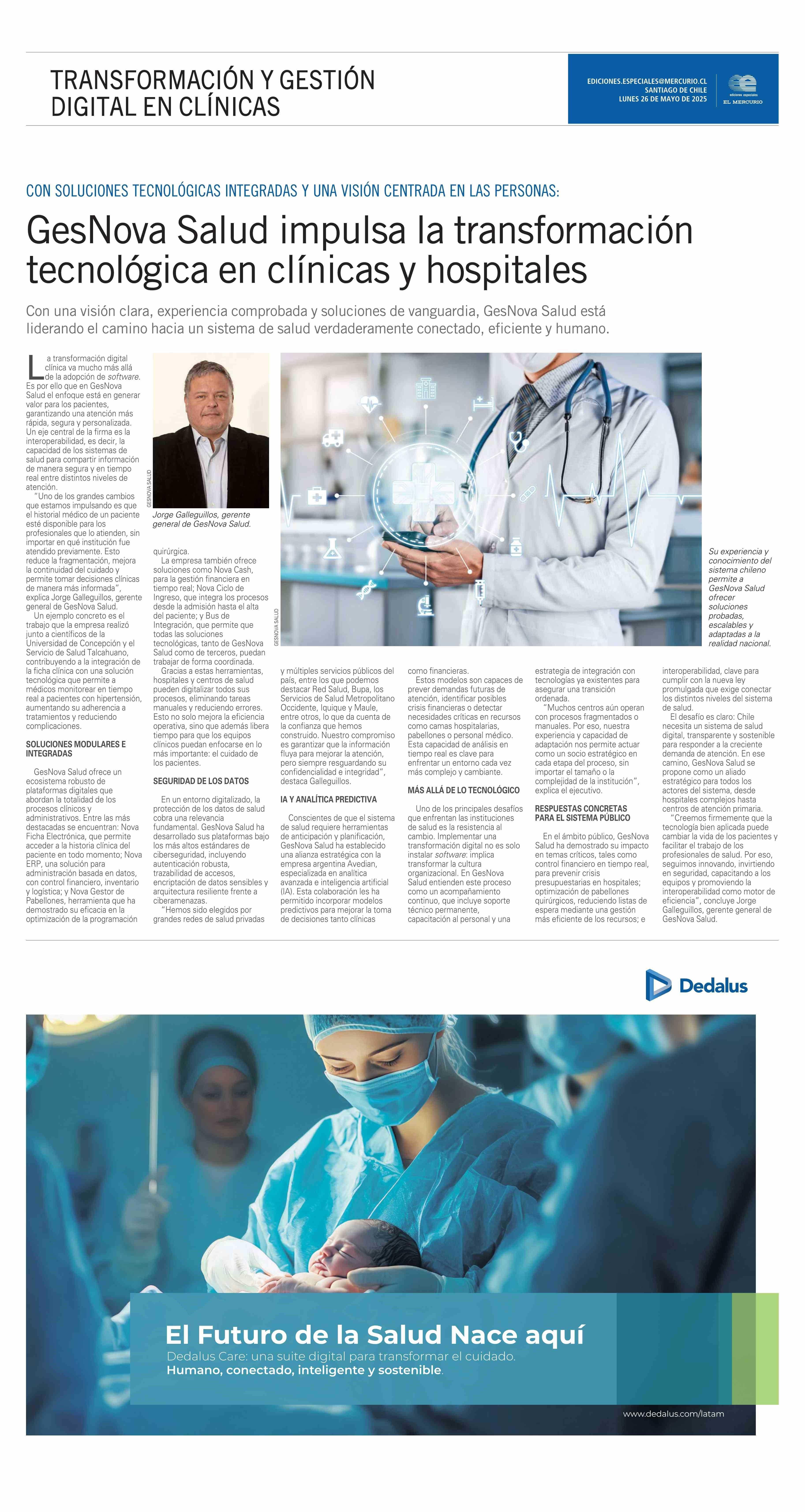 GesNova Salud impulsa la transformación tecnológica en clínicas y hospitales 26-05-2025 El Mercurio |