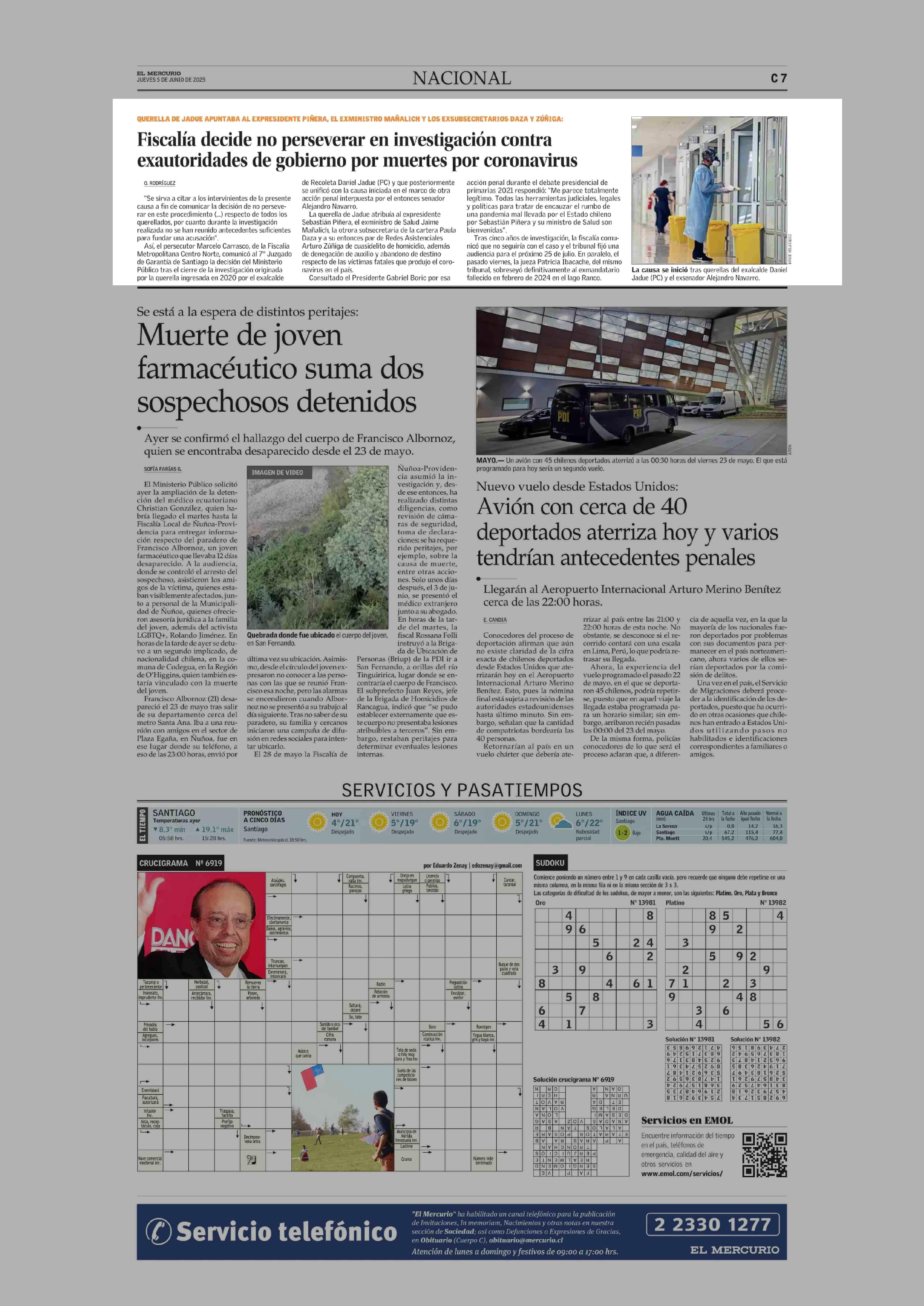 Fiscalía decide no perseverar en investigación contra exautoridades de gobierno por muertes por coronavirus 05-06-2025 El Mercurio |