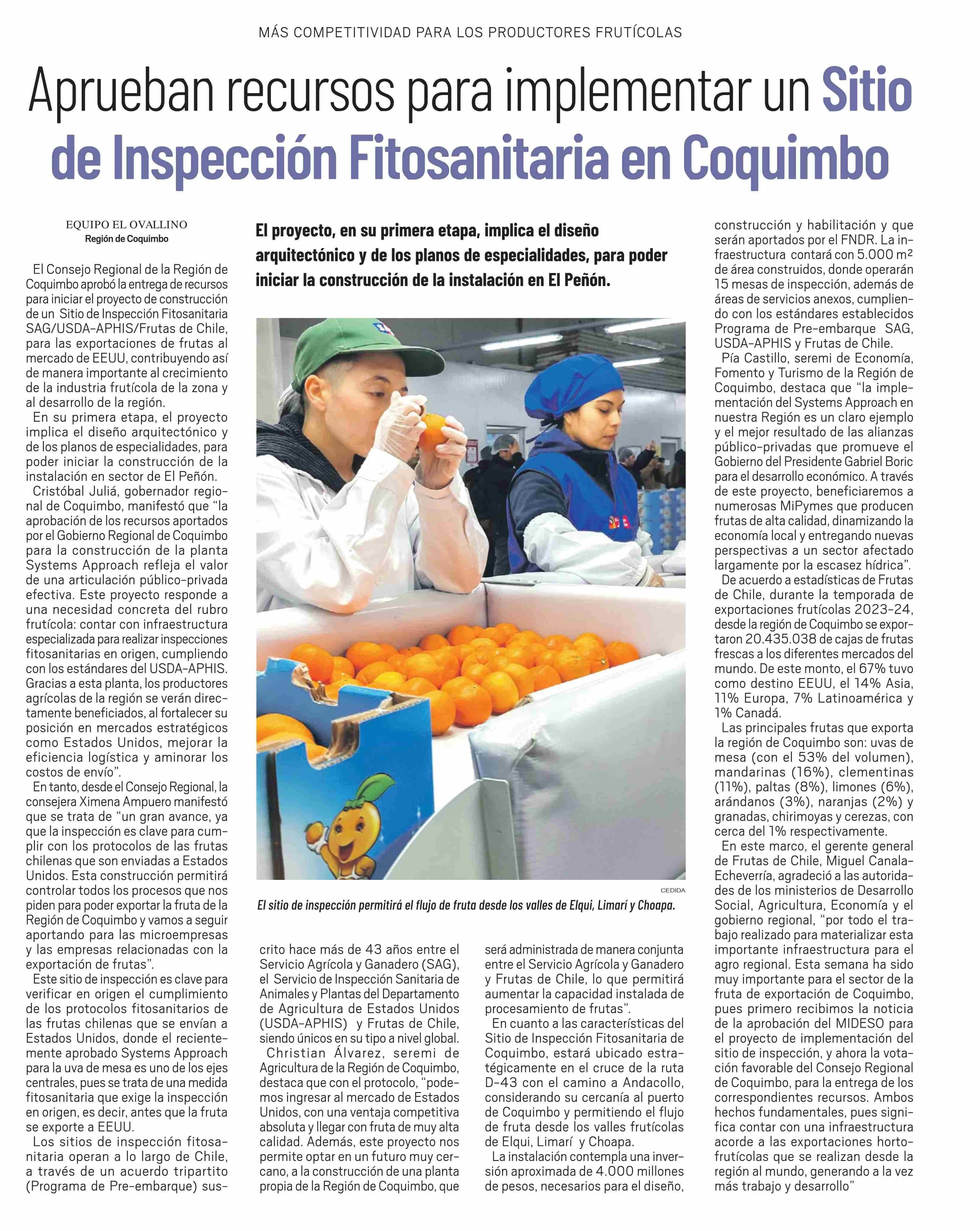 Título: Aprueban recursos para implementar un Sitio de Inspección Fitosanitaria en Coquimbo
