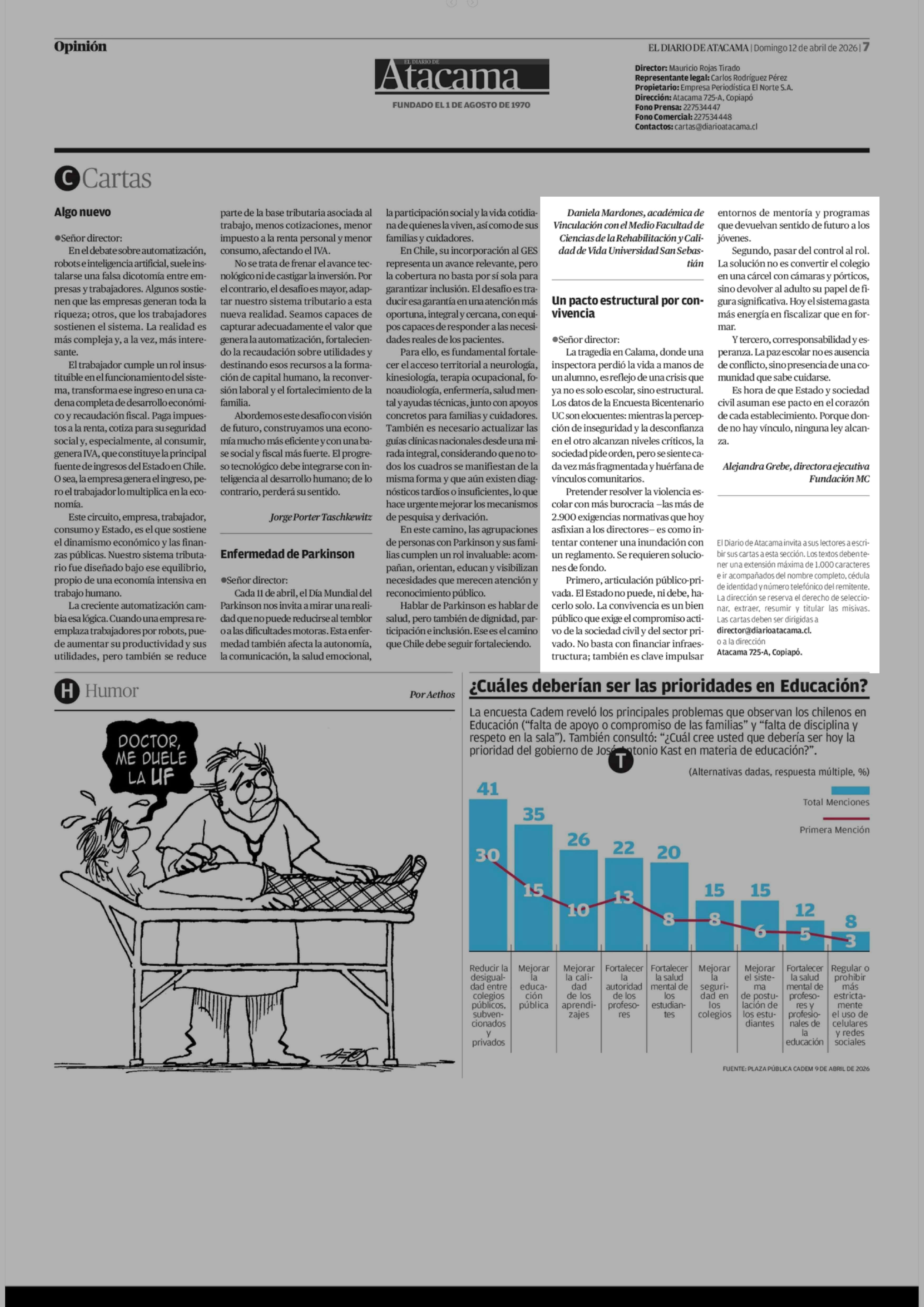 Cartas: Un pacto estructural por convivencia 12-04-2026 El Diario de Atacama |