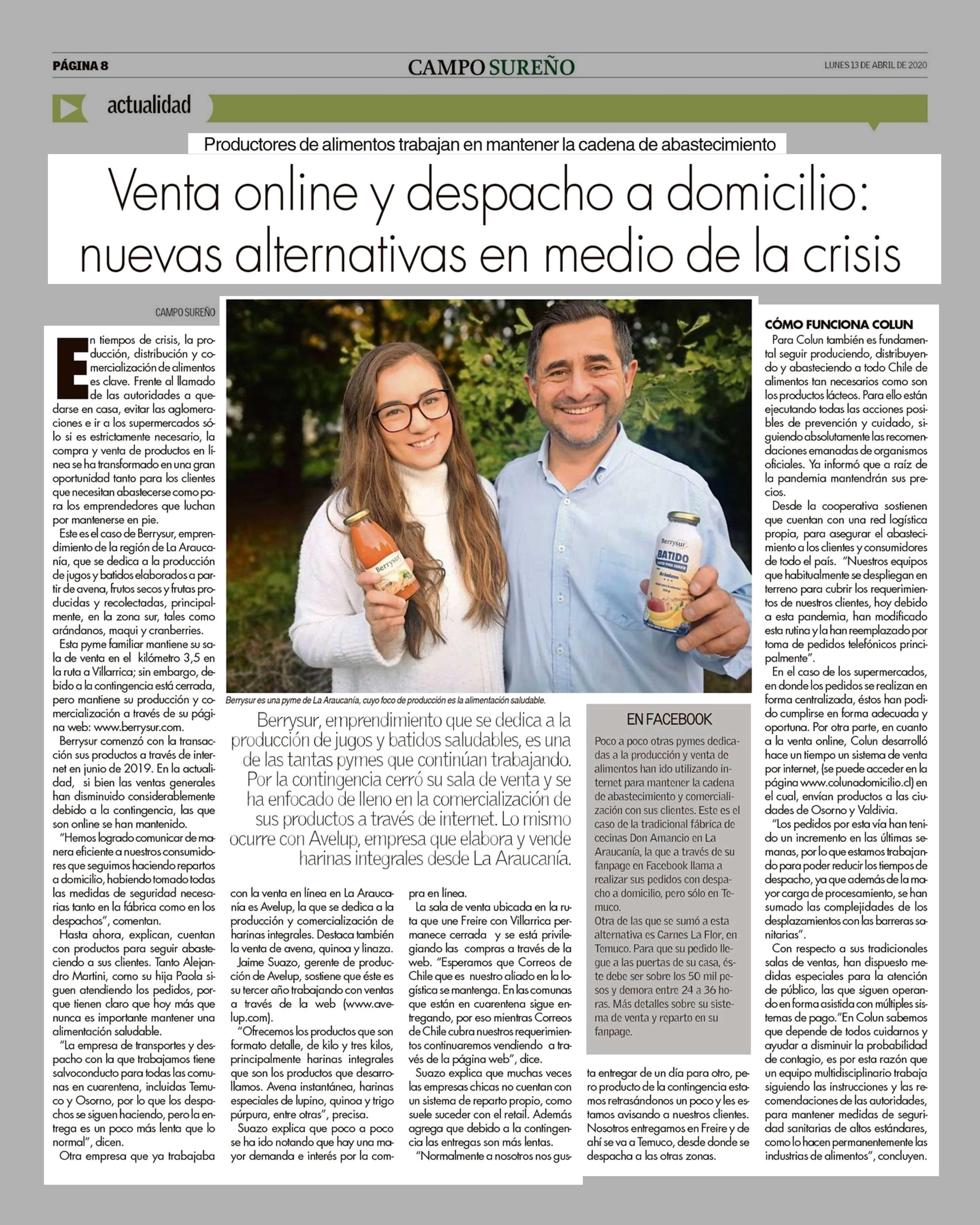 Título: Venta online y despacho a domicilio: nuevas alternativas en medio de la crisis