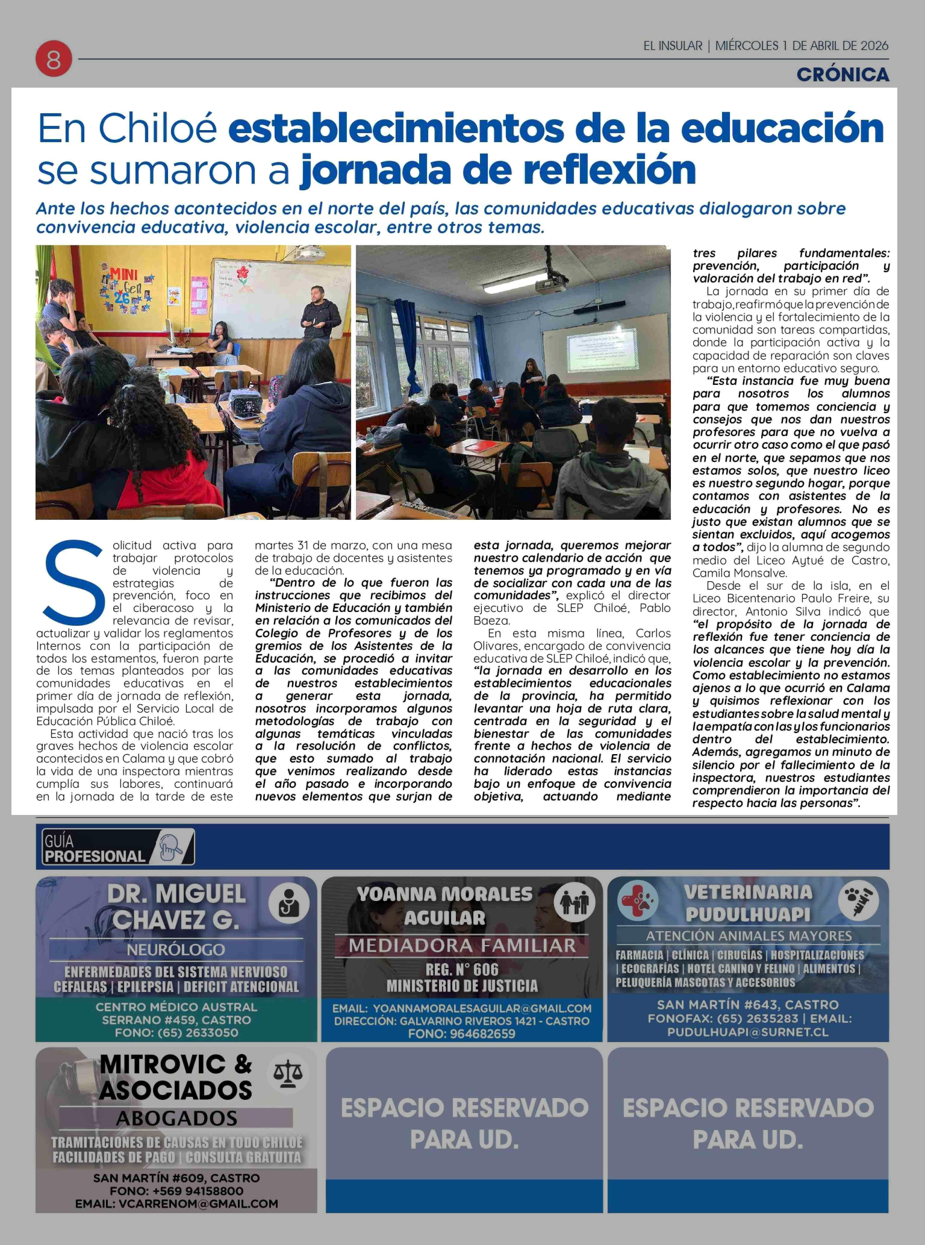 En Chiloé establecimientos de la educación se sumaron a jornada de reflexión 01-04-2026 El Insular |