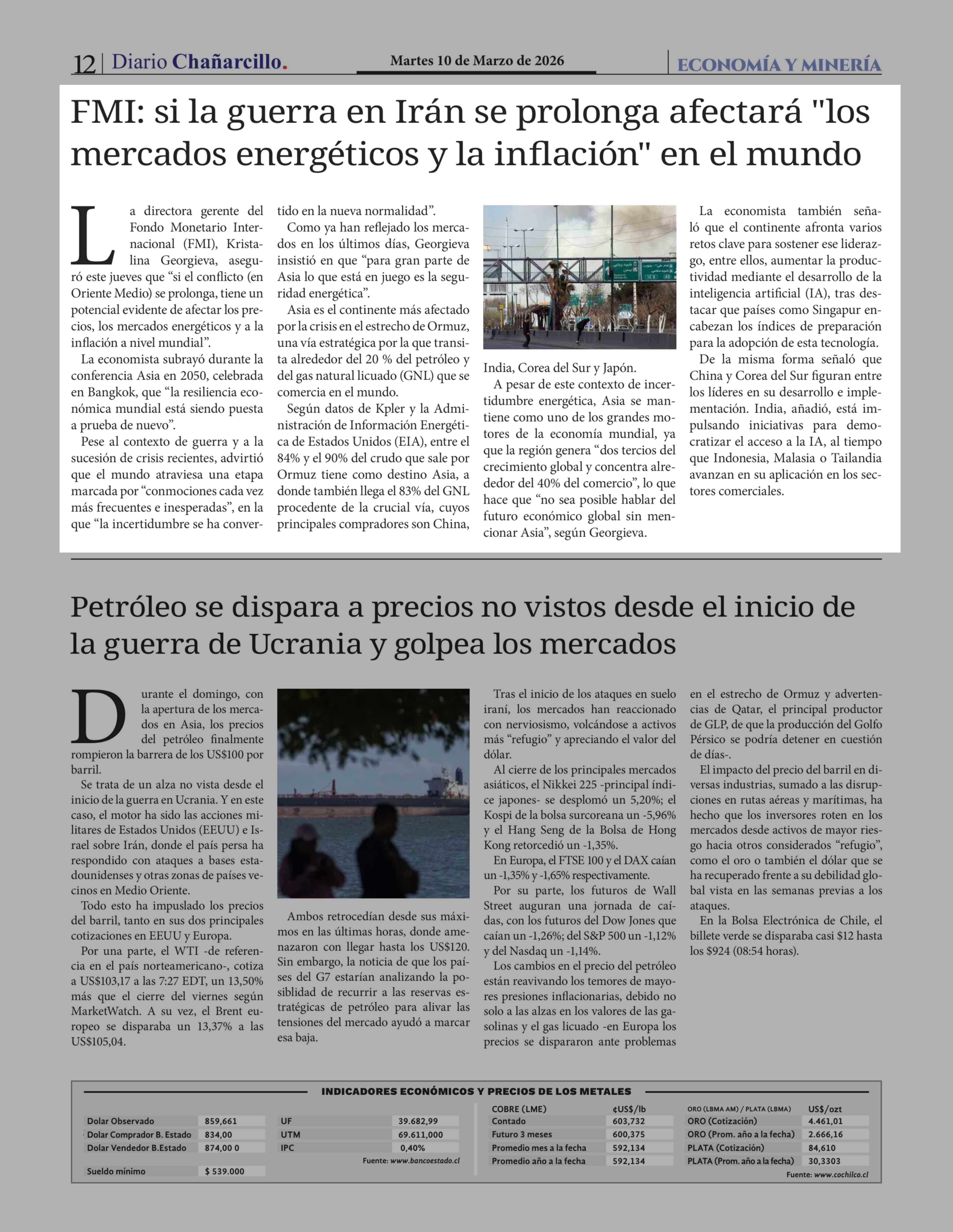 FMI: si la guerra en Irán se prolonga afectará "los mercados energéticos y la inflación" en el mundo 10-03-2026 Diario Chañarcillo |