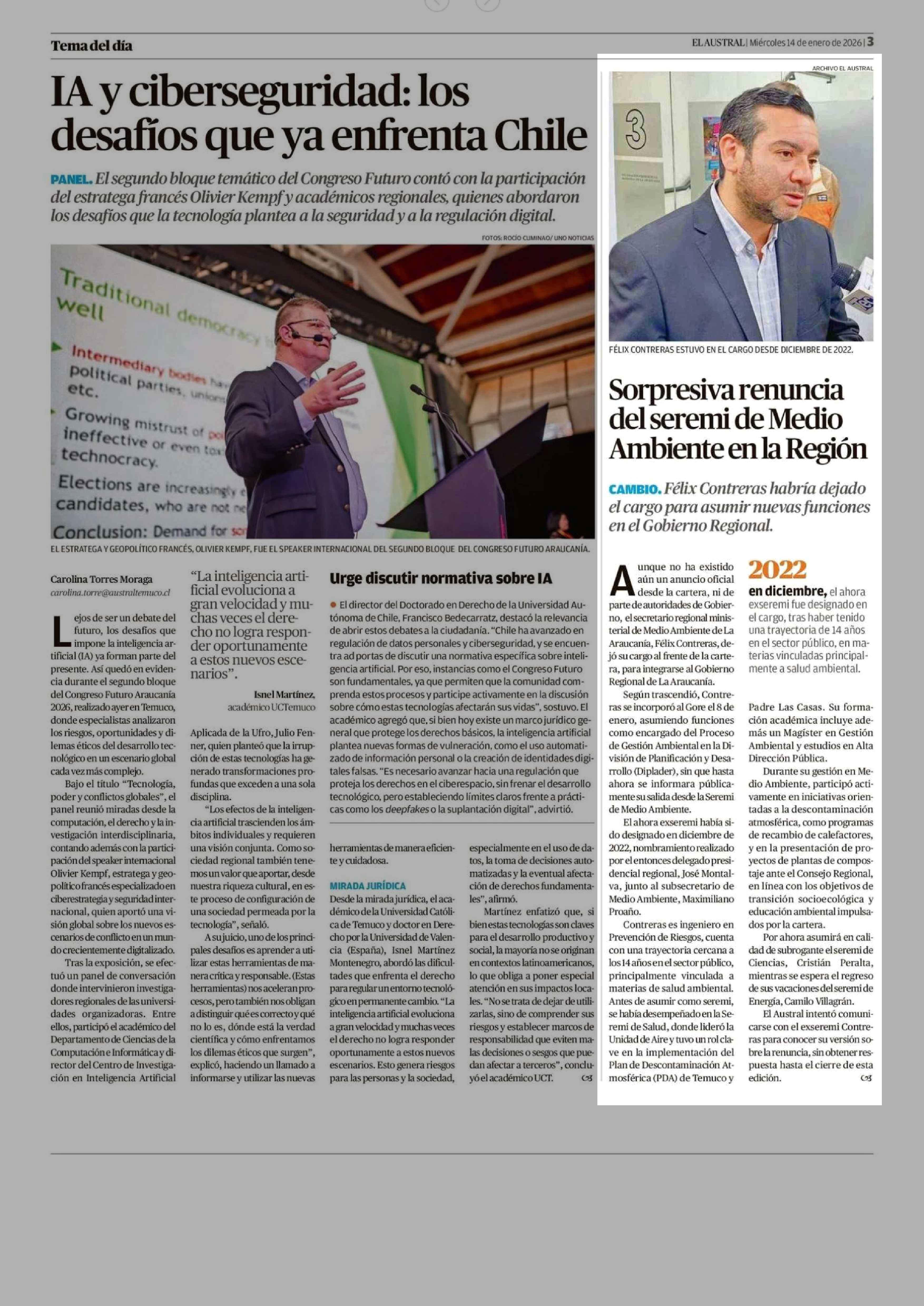 Sorpresiva renuncia del seremi de Medio Ambiente en la Región 14-01-2026 El Austral de la Araucanía |