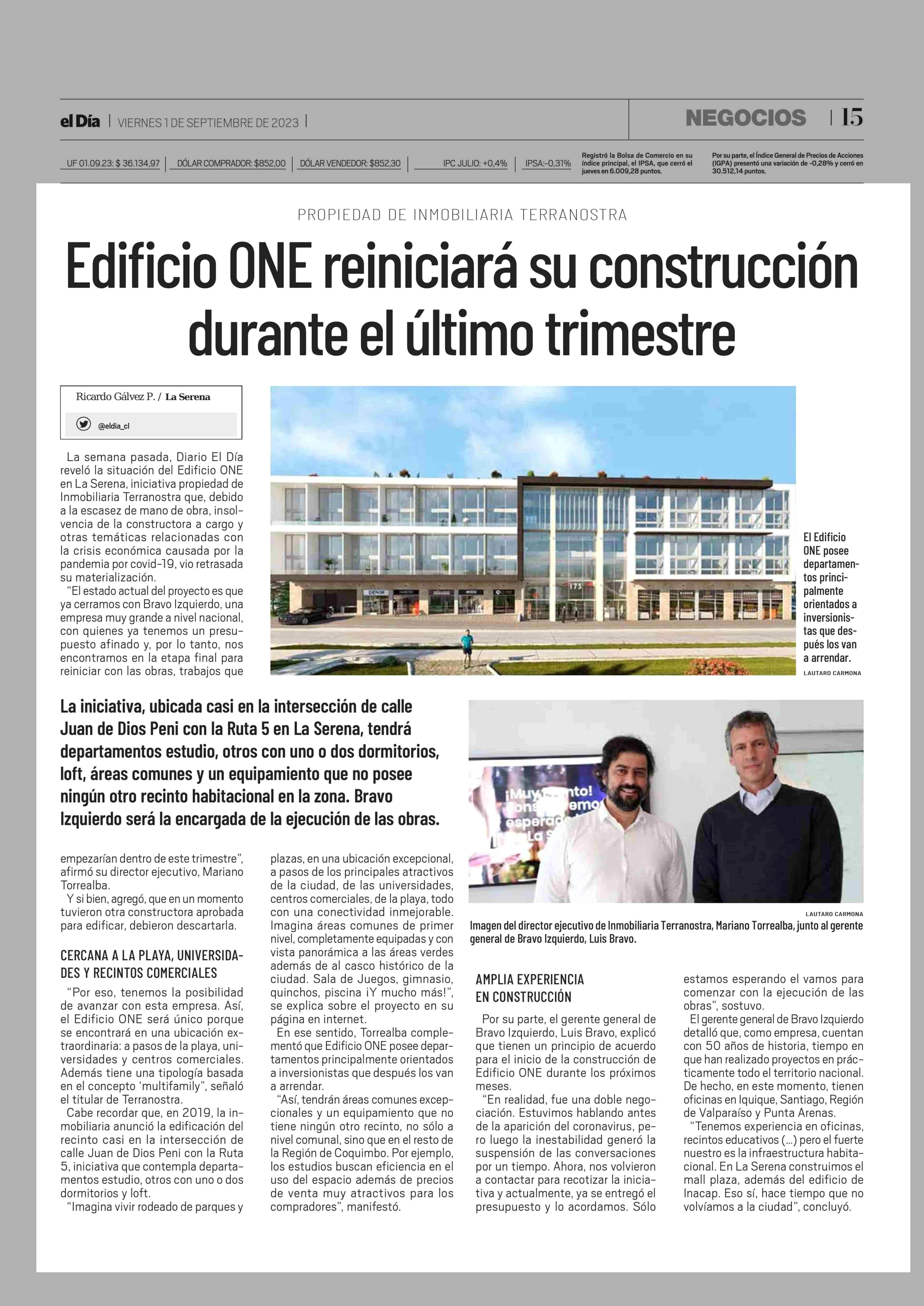 Edificio ONE reiniciaráa su construcción durante el último trimestre 01-09-2023 El Día |