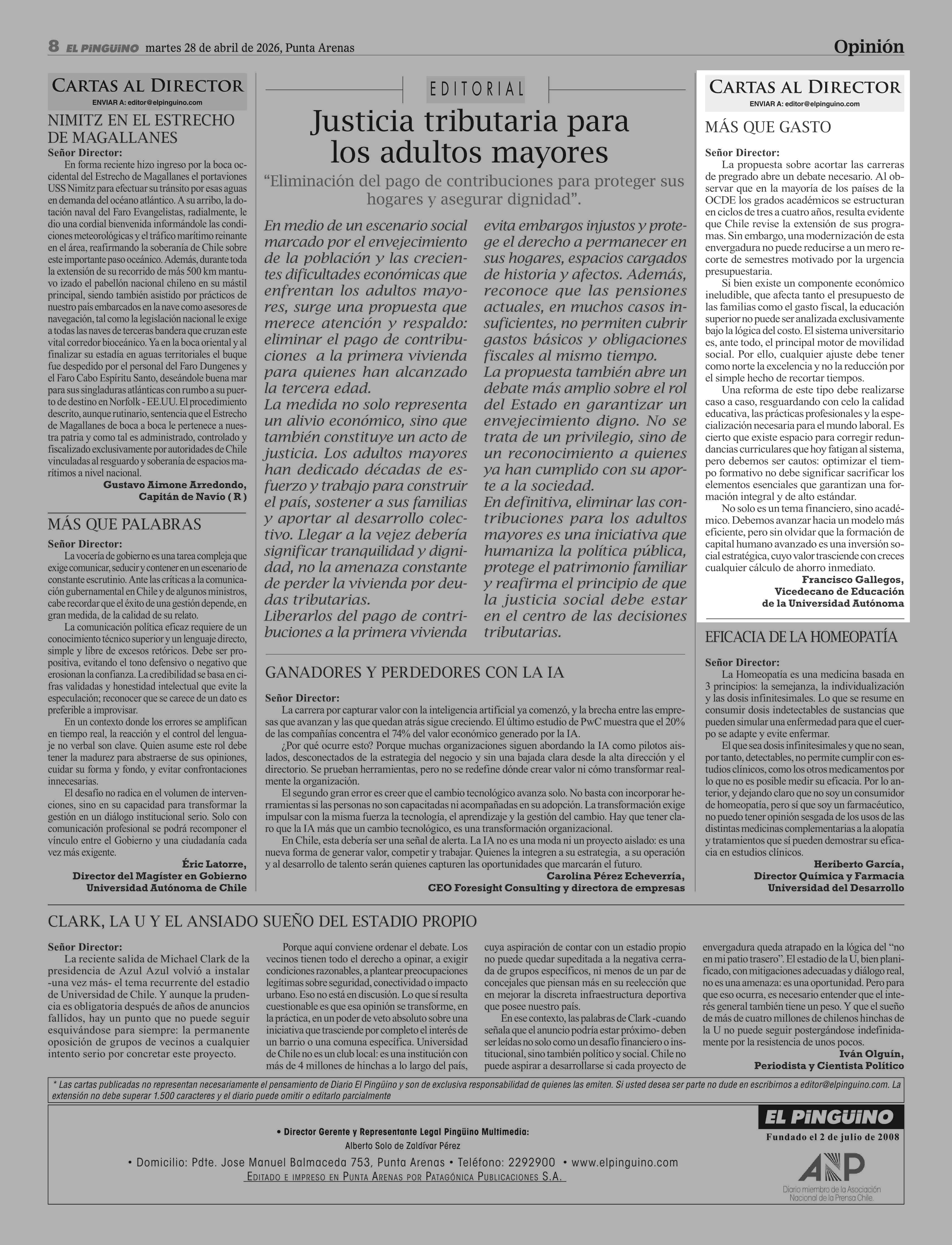 Cartas: Más que gasto 28-04-2026 El Pingüino |