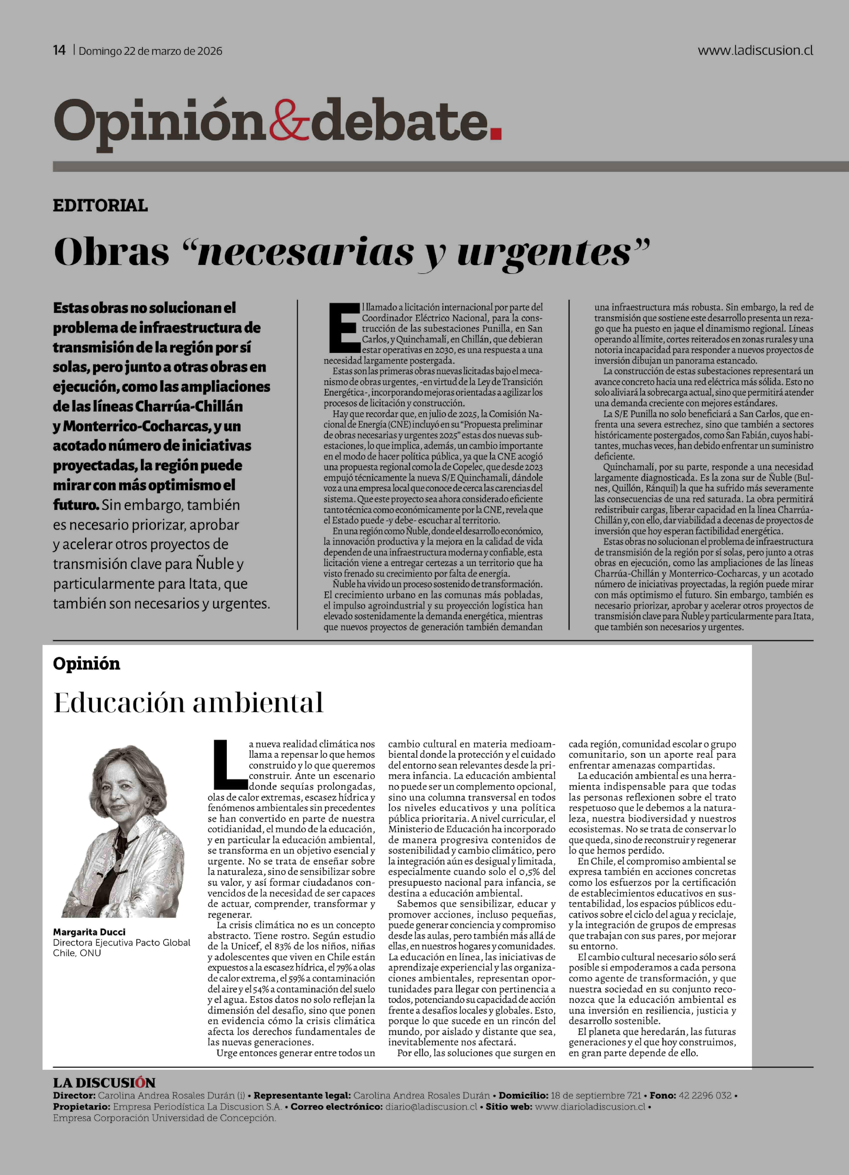 Columnas de Opinión: Educación ambiental 22-03-2026 La Discusión |