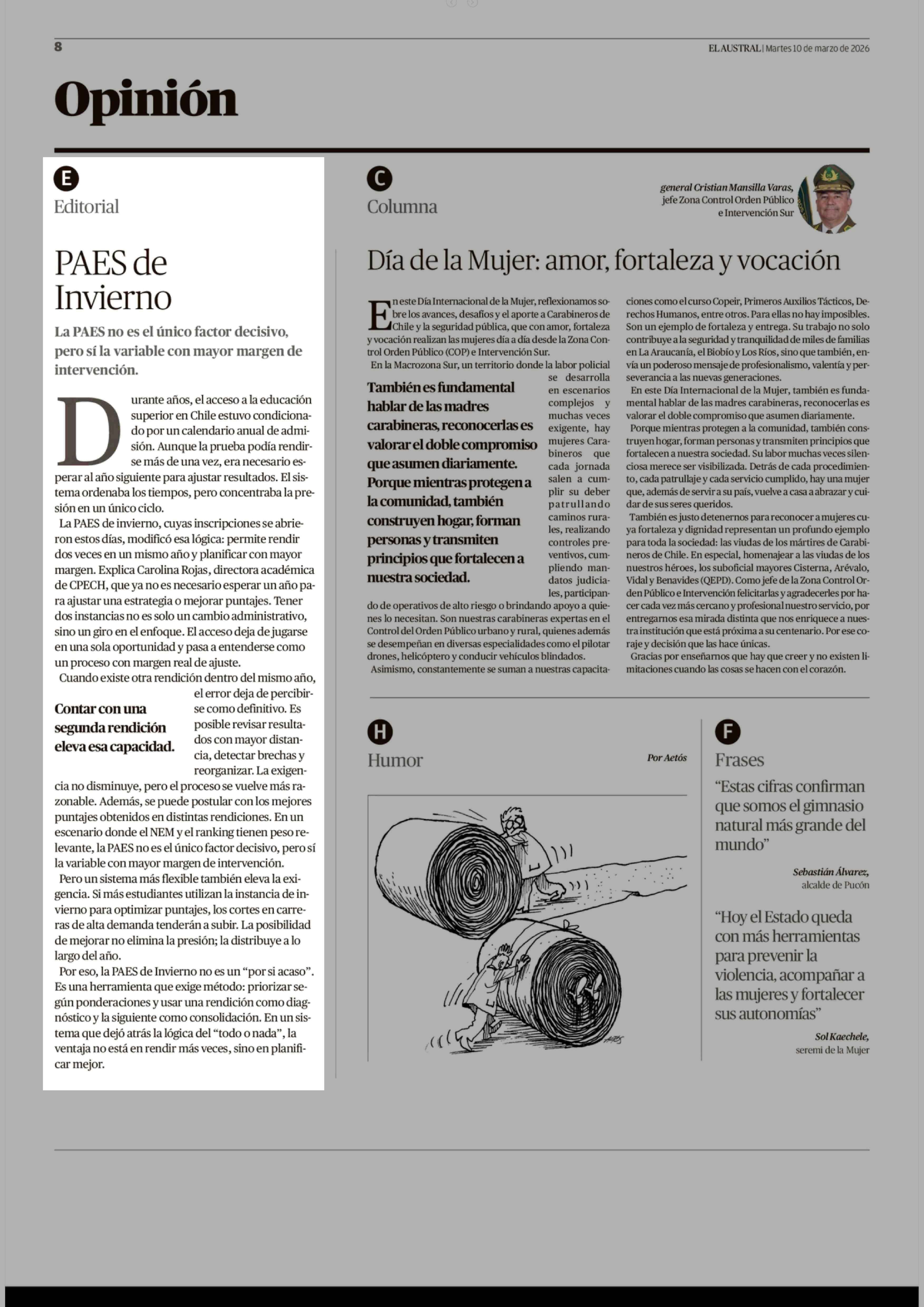 Fecha: 10-03-2026 Sector: Editorial Región: Región de la Araucanía