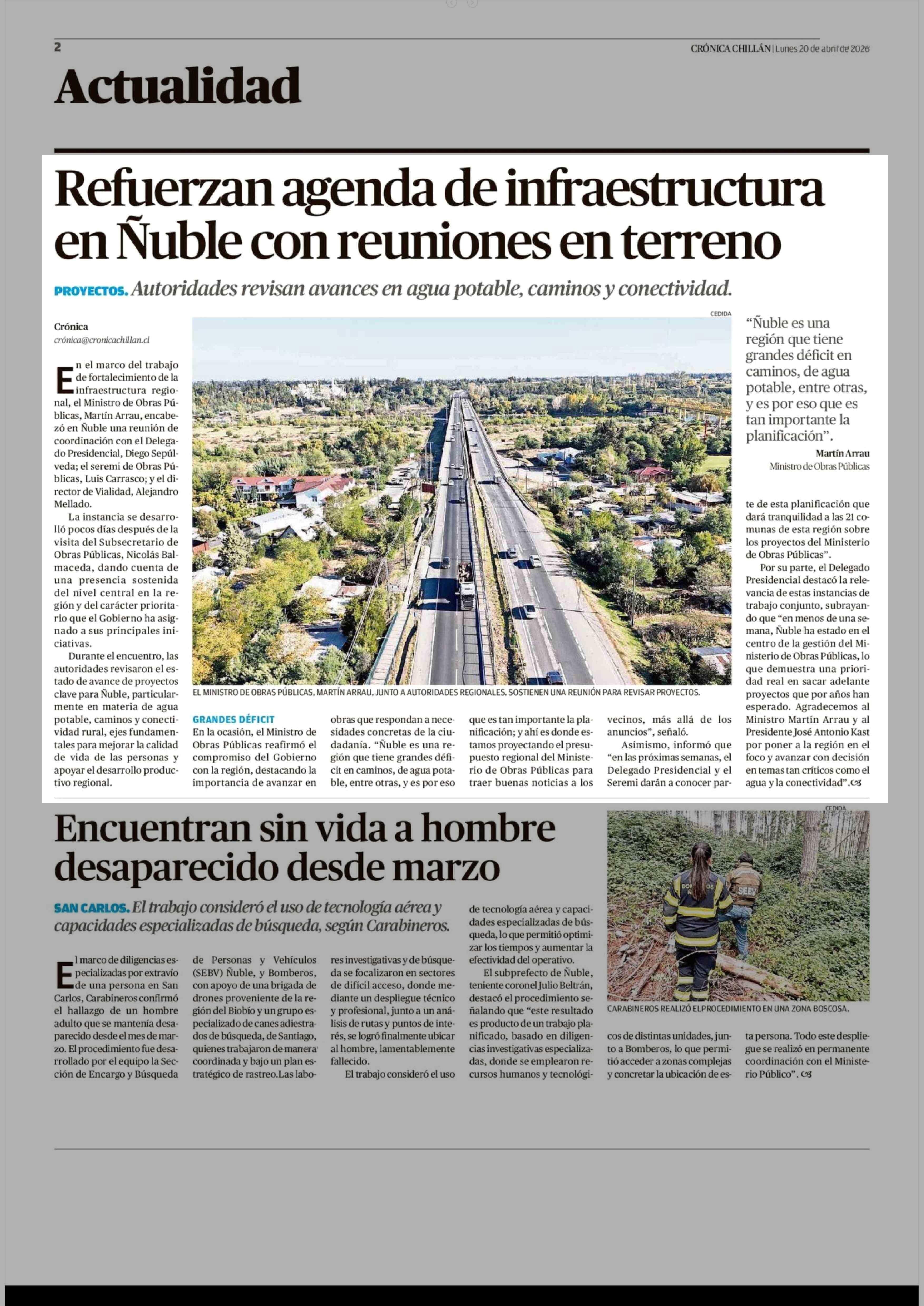 | Fecha: | 20-04-2026 | Sector: | Noticia general | Región: | Región del Ñuble |