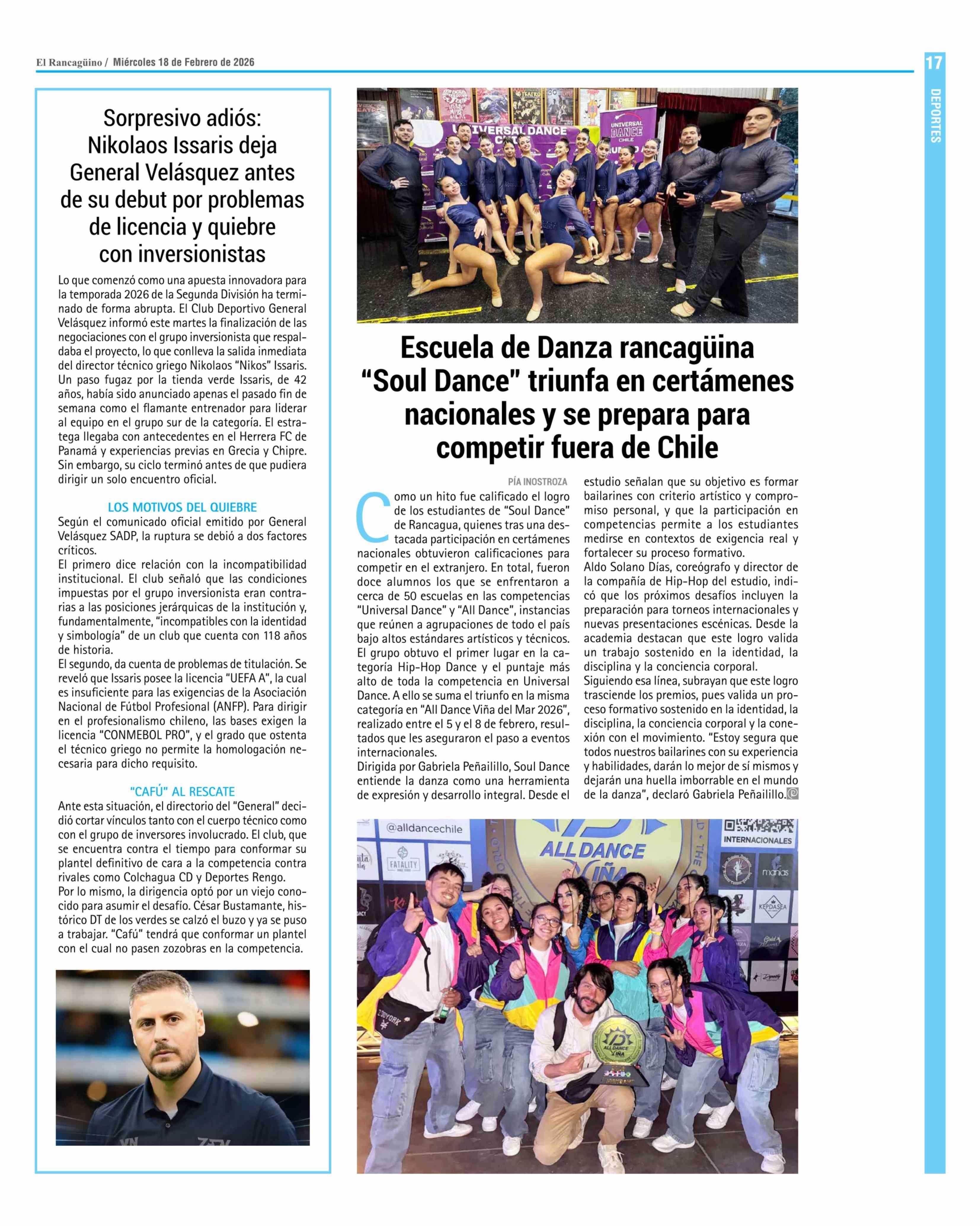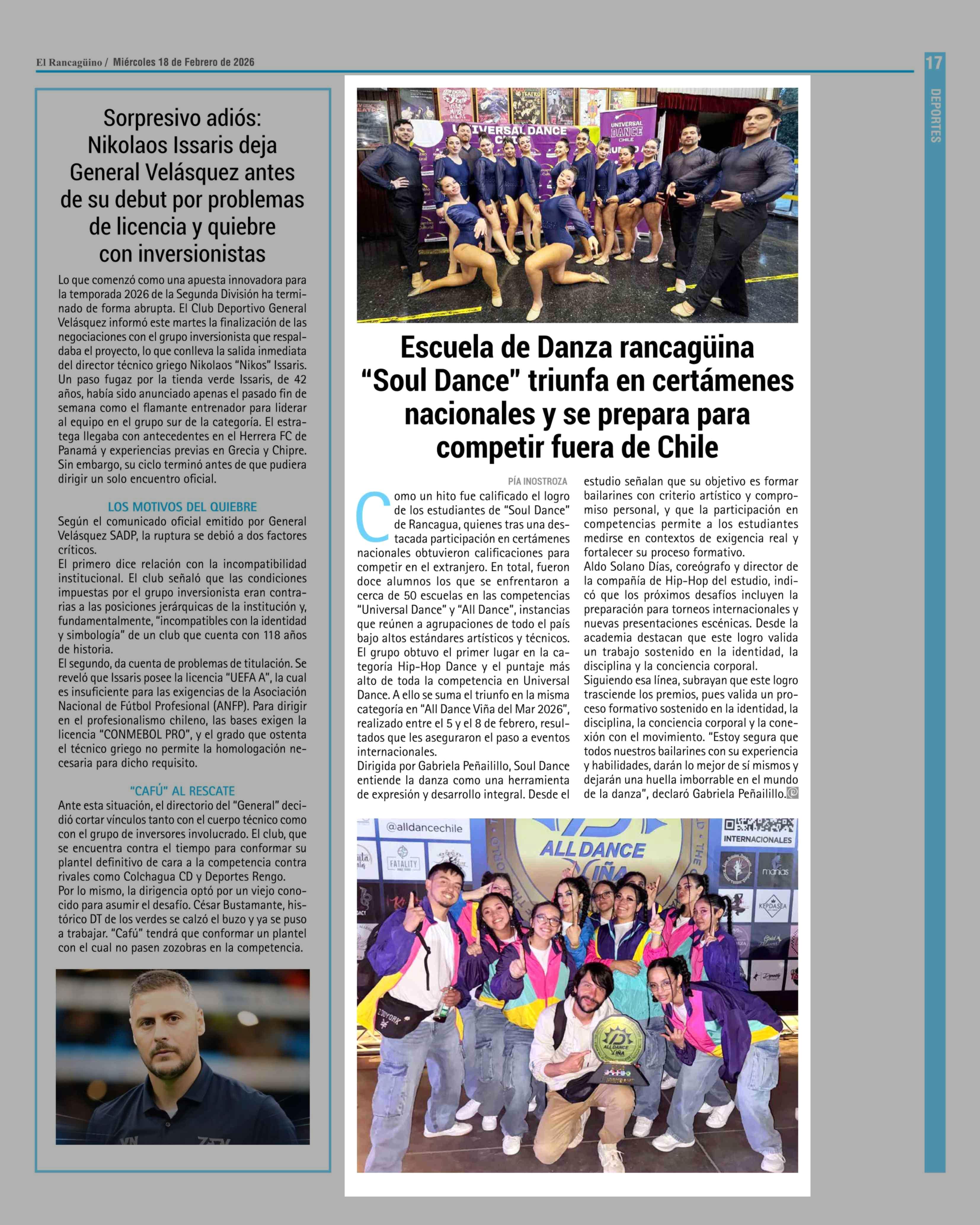 Escuela de Danza rancagüina "Soul Dance" triunfa en certámenes nacionales y se prepara para competir fuera de Chile 18-02-2026 El Rancagüino |